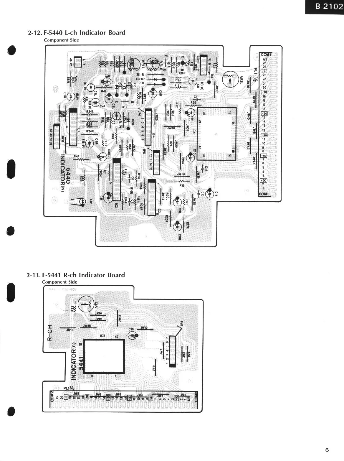 Sansui B-2102 - Indicator Board Component Layouts; F-5440 L-ch Indicator Board Component Layout; F-5441 R-ch Indicator Board Component Layout