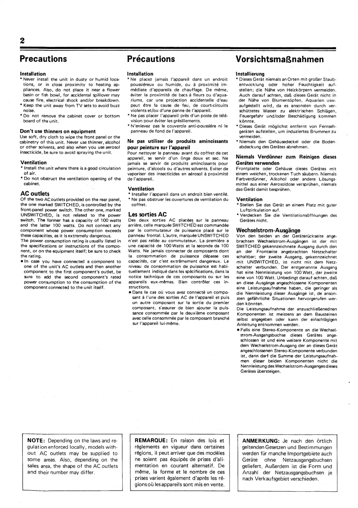Sansui B-77 - Precautions; Installation Precautions; Cleaning and Solvent Use; Ventilation Requirements