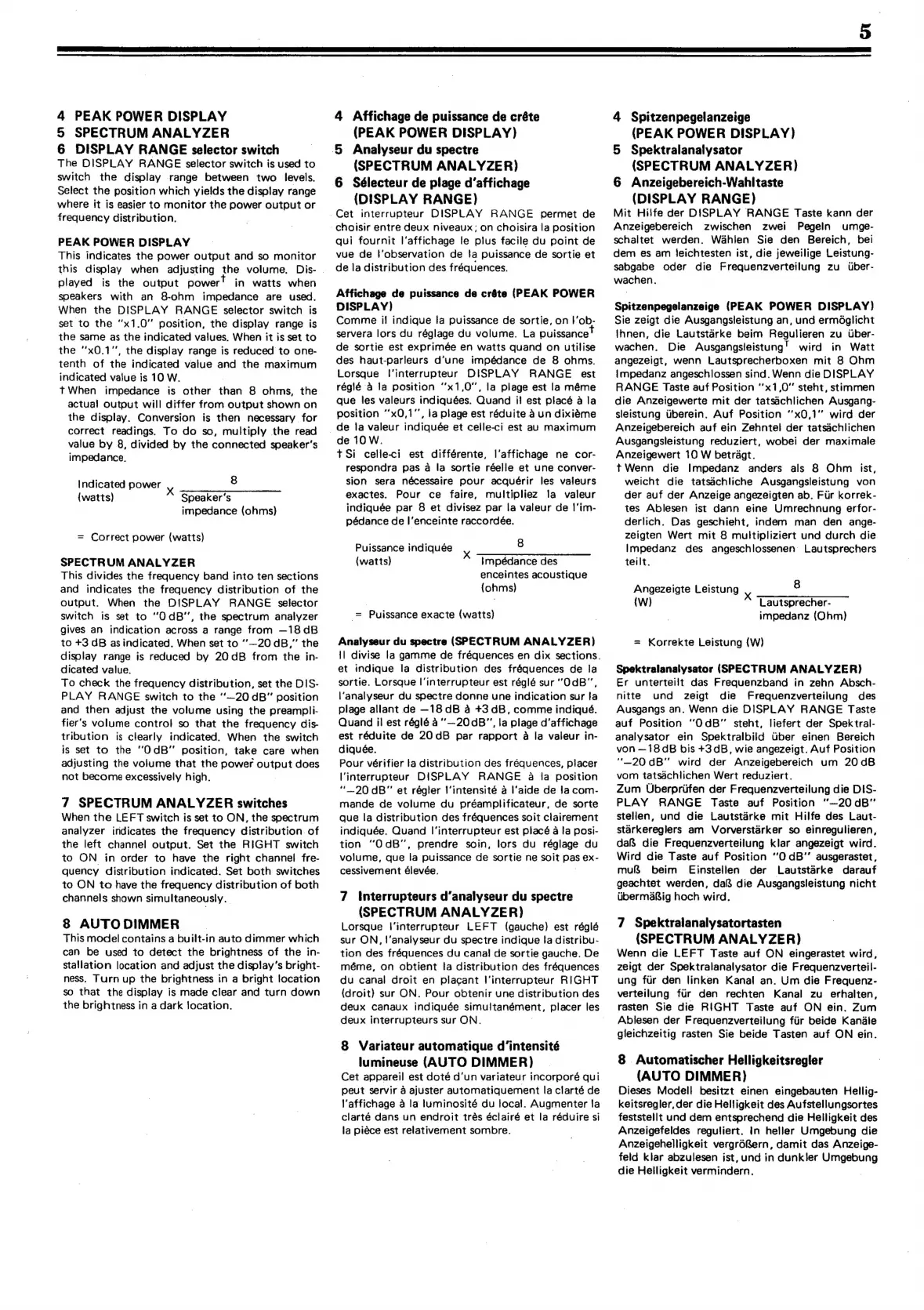Sansui B-77 - Peak Power Display; Spectrum Analyzer; Display Range Selector; Spectrum Analyzer Switches