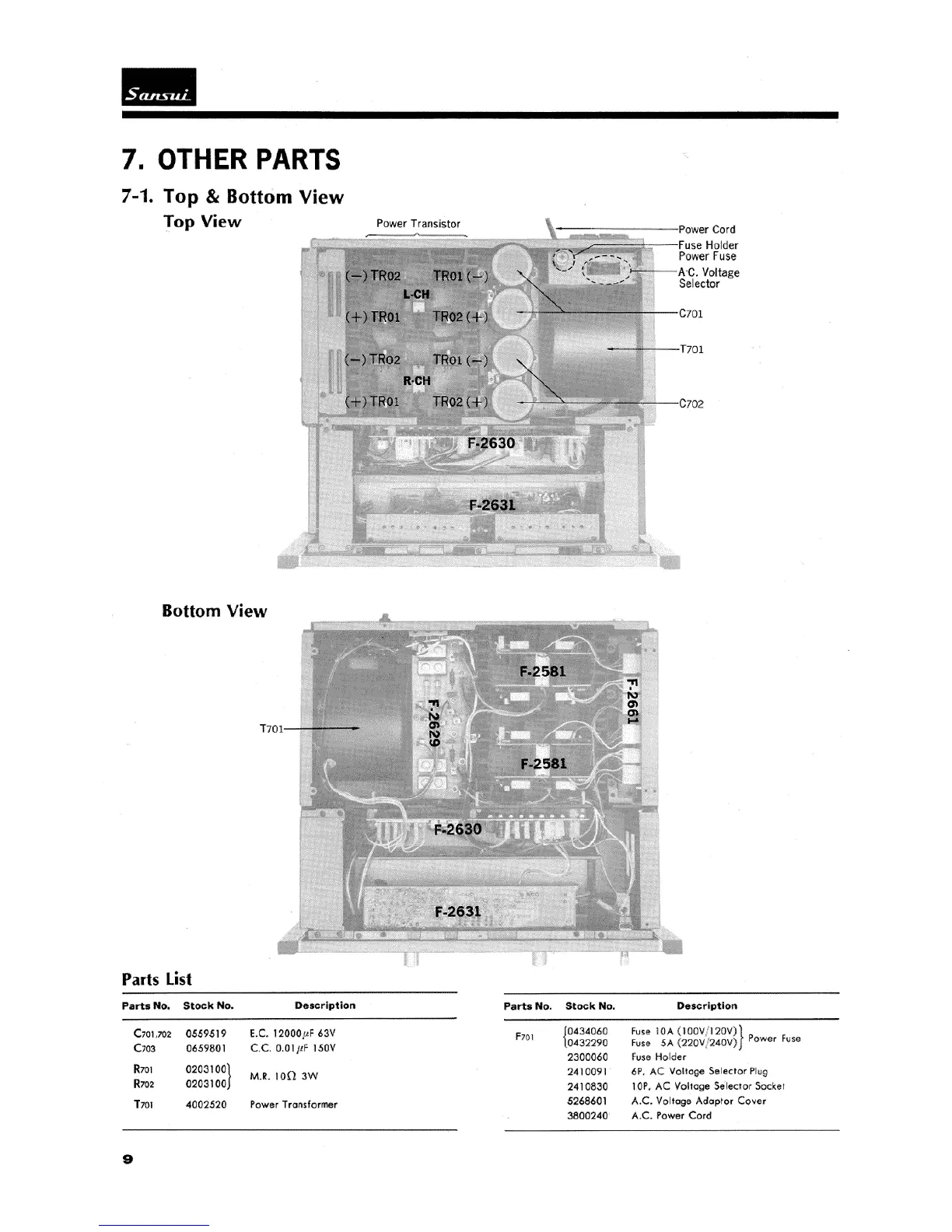 Sansui BA-2000 - Sansui BA-2000 Other Parts Overview; Internal Component Top and Bottom Views