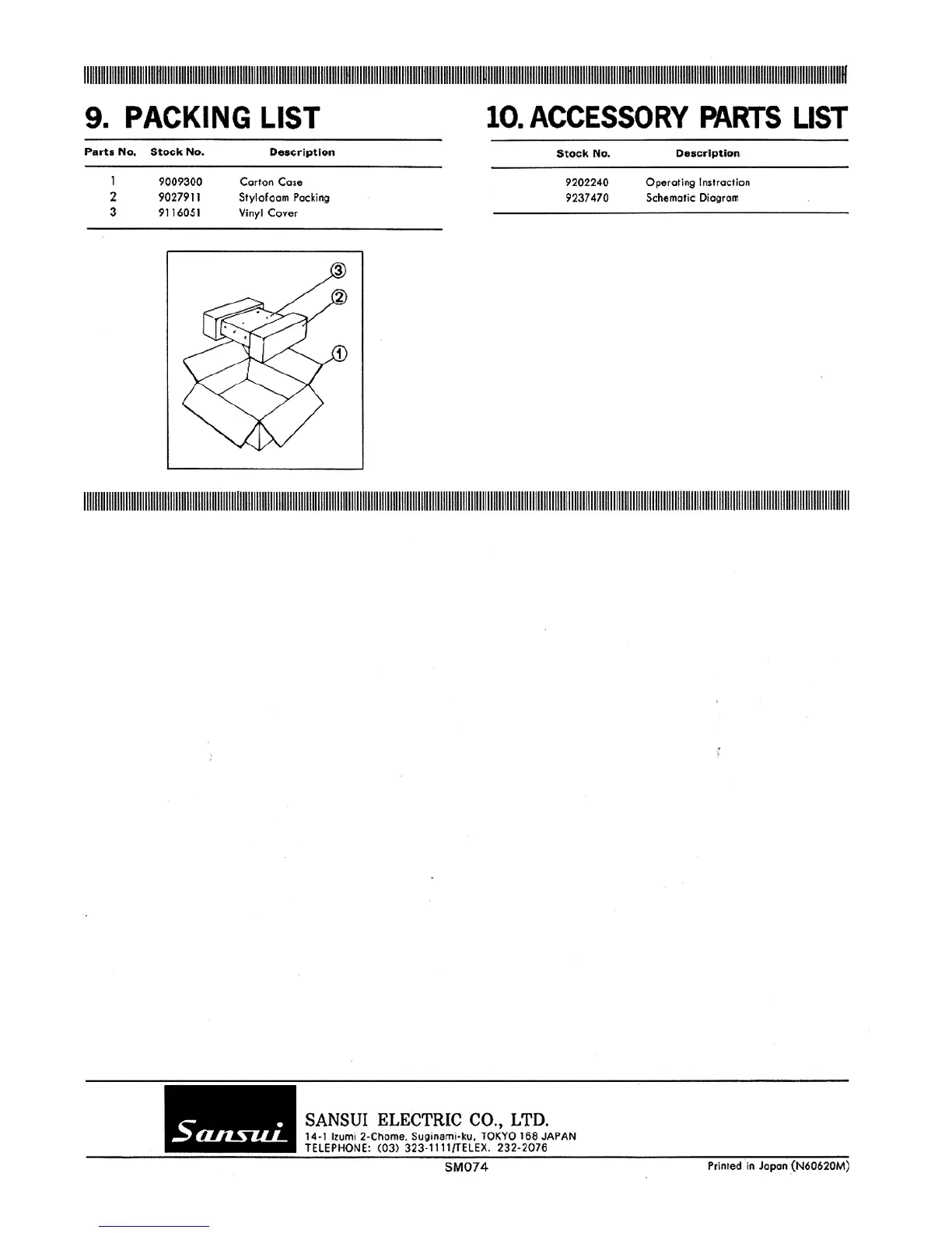 Sansui BA-2000 - Sansui BA-2000 Packing List; Sansui BA-2000 Accessory Parts List