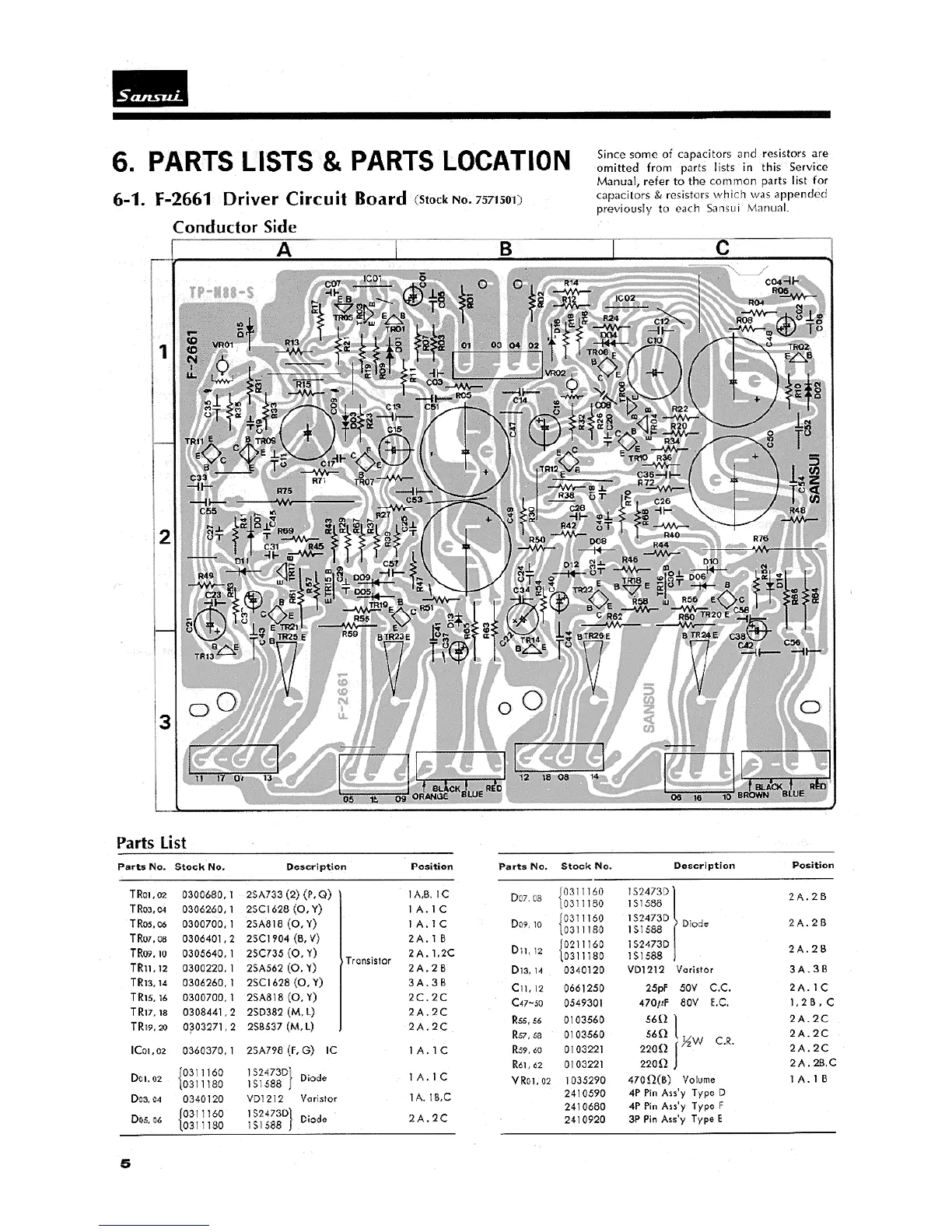 Sansui BA-2000 - Sansui BA-2000 Parts Lists and Location; F-2661 Driver Circuit Board Components