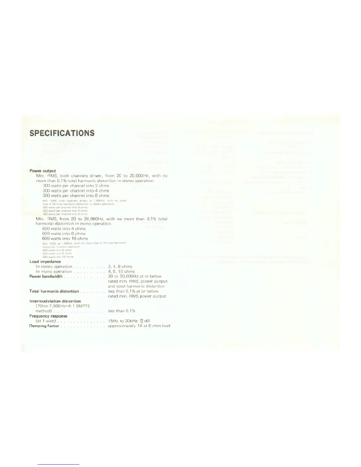 Sansui BA-5000 - Specifications; Power Output and Bandwidth Ratings; Load Impedance Requirements; Distortion and Frequency Response