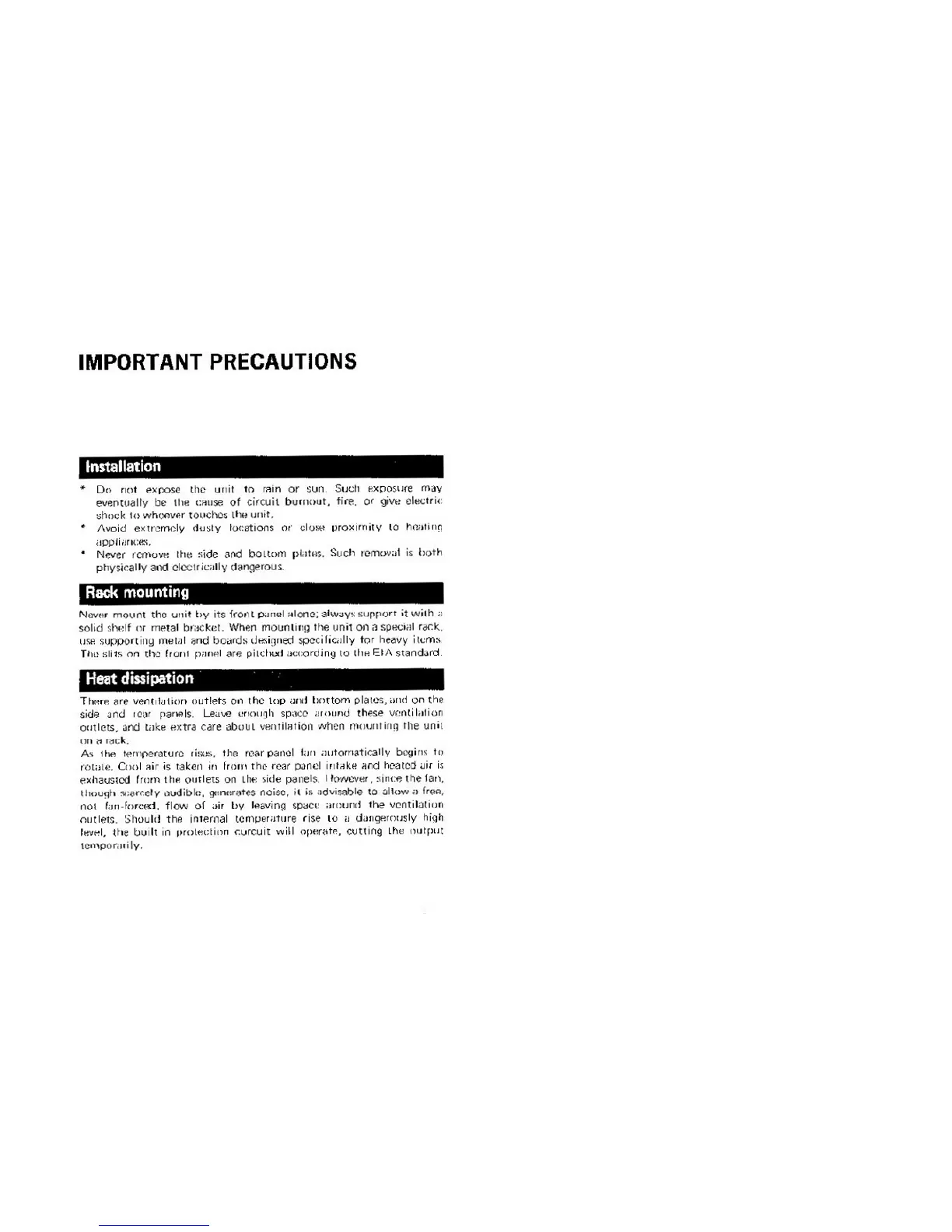 Sansui BA-5000 - Installation Safety; Rack Mounting Safety; Heat Dissipation Requirements