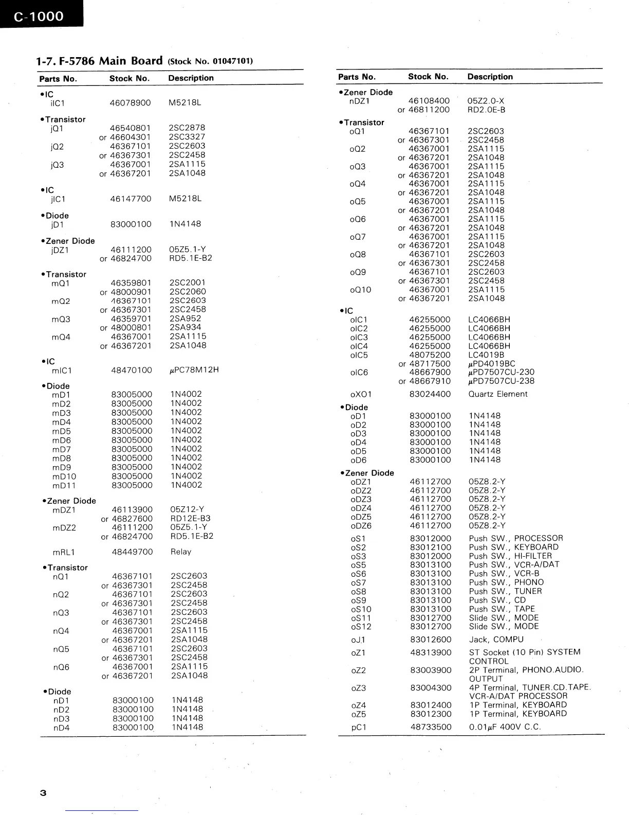 Sansui C-1000 - Main Board (F-5786) Component List