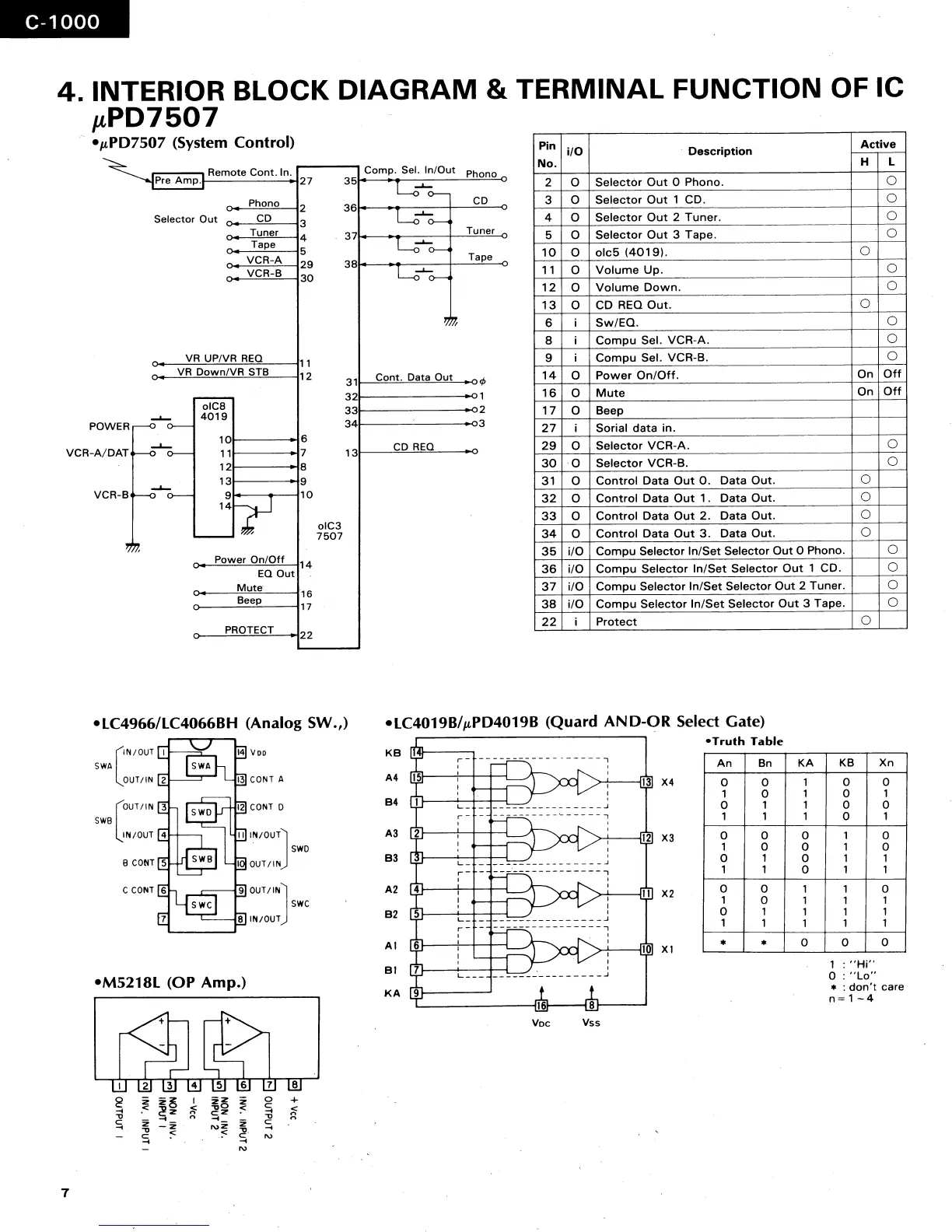 Sansui C-1000 - Integrated Circuit Details; µPD7507 System Control IC Functionality; Auxiliary ICs and Logic Gates
