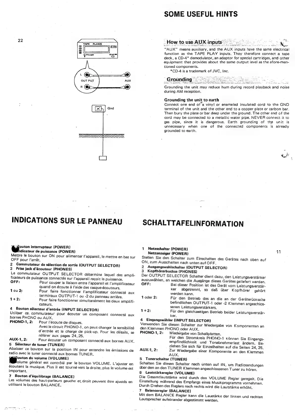 Sansui CA-2000 - Useful Hints; AUX Input Usage; Unit Grounding