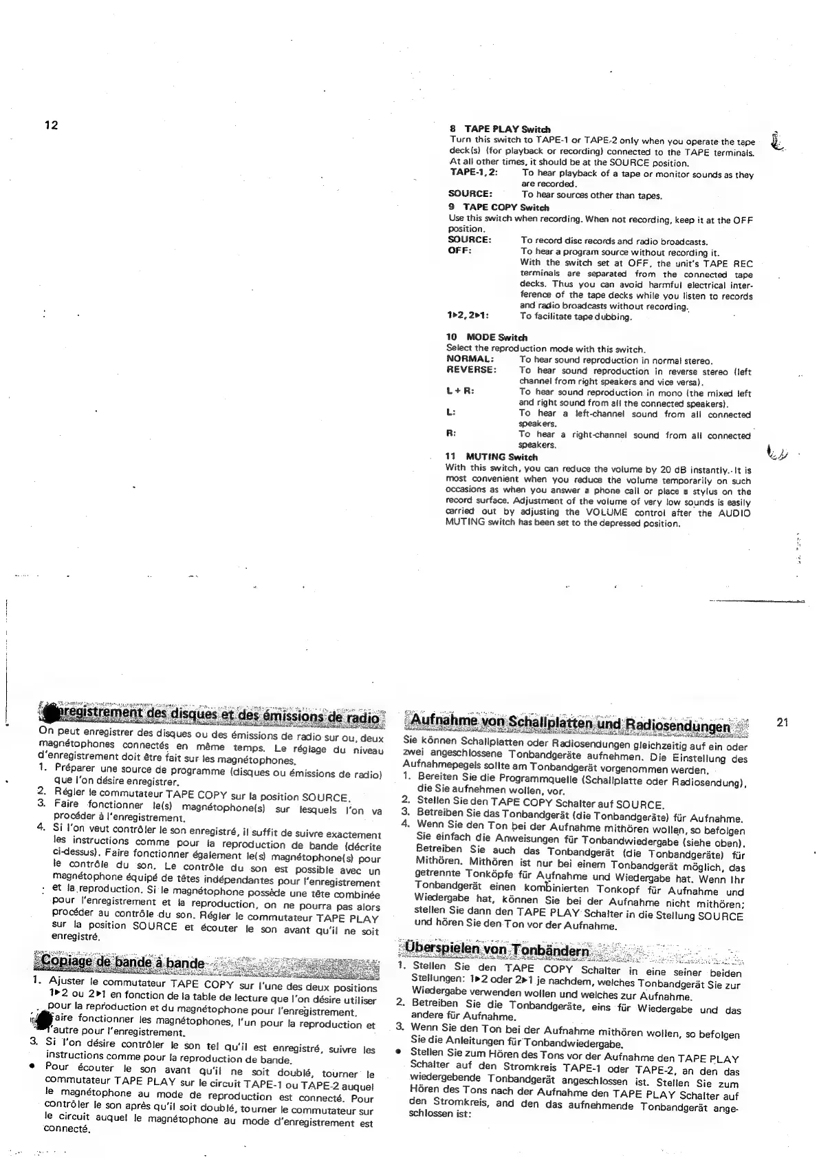 Sansui CA-2000 - Recording and Dubbing Procedures; Recording Records and Radio; Tape to Tape Copying
