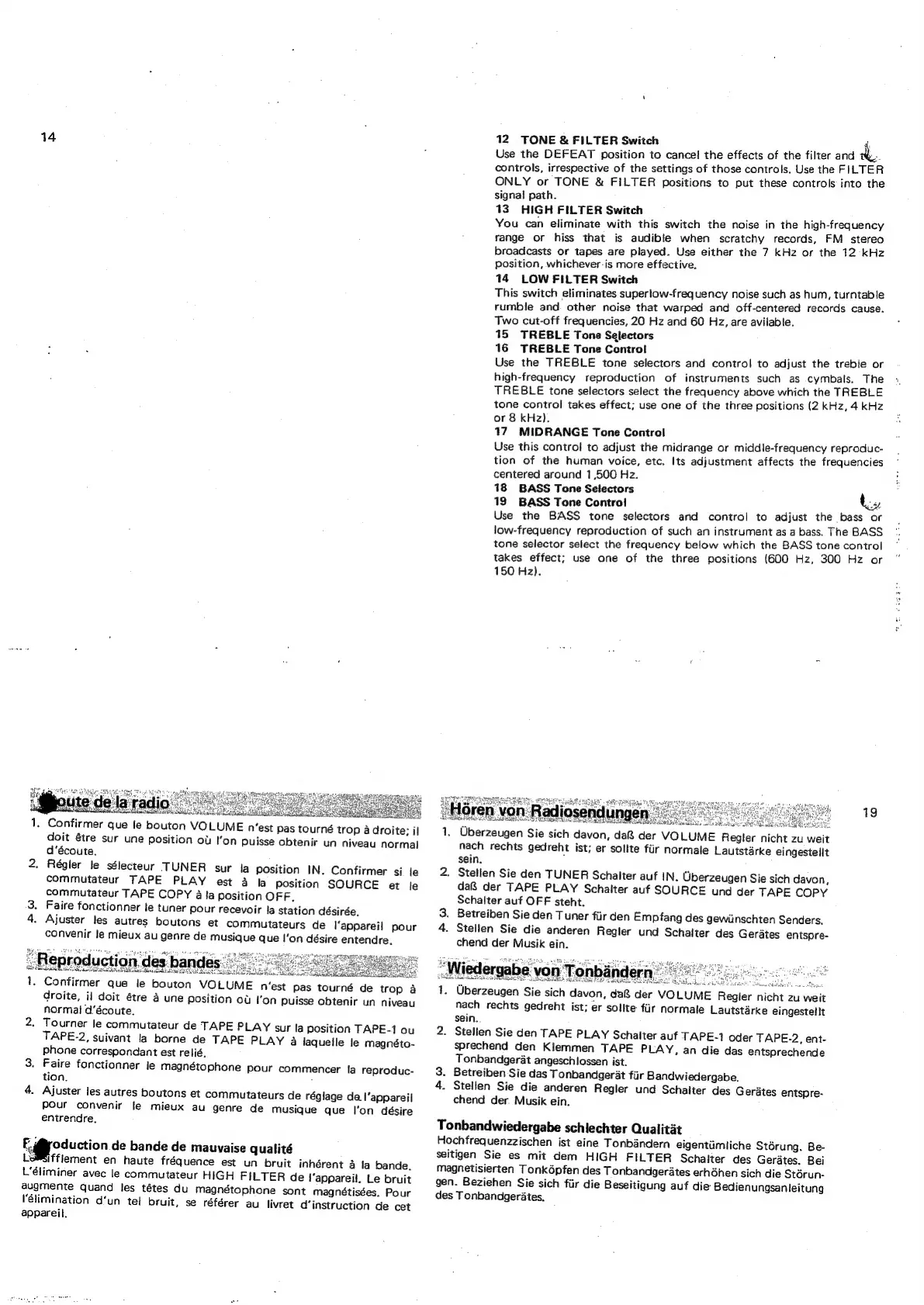 Sansui CA-2000 - OPERATING PROCEDURES; Listening to Records; Playback of Tapes; Playback Quality Troubleshooting