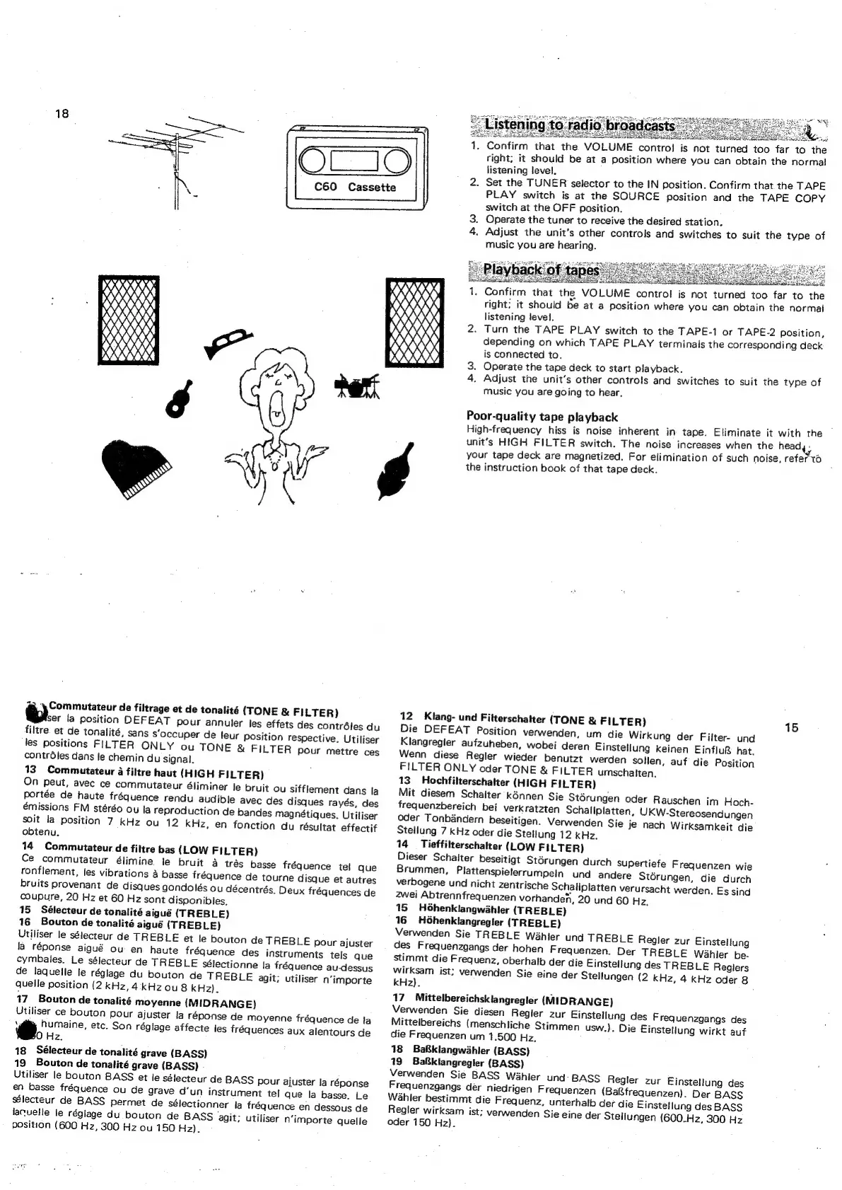 Sansui CA-2000 - Tone and Filter Controls; Tone and Filter Selectors; High Filter Operation; Low Filter Operation