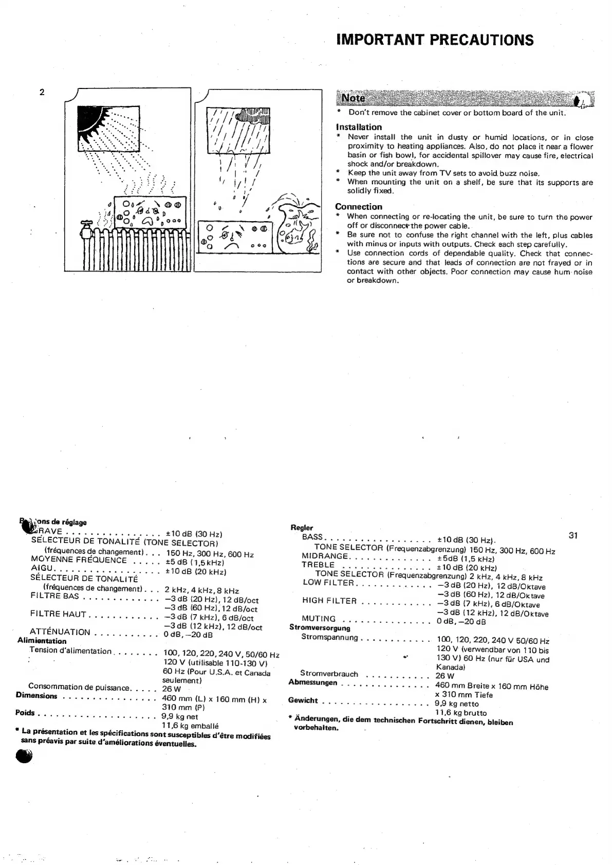 Sansui CA-2000 - IMPORTANT PRECAUTIONS; Unit Installation Precautions; Connection Safety; Handling Unit Covers