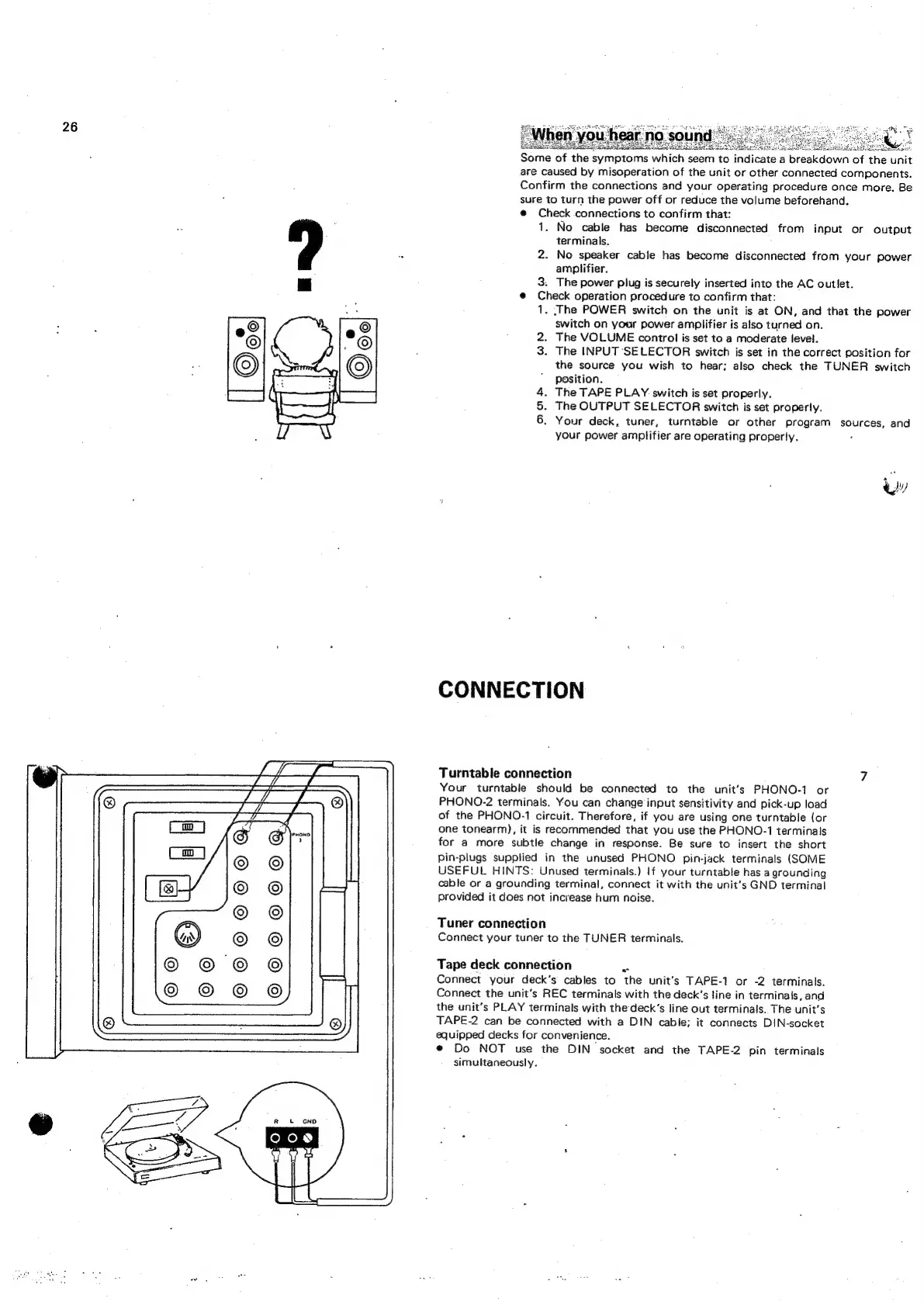Sansui CA-2000 - Troubleshooting No Sound; Connection and Operation Checks; CONNECTION; Turntable Connection