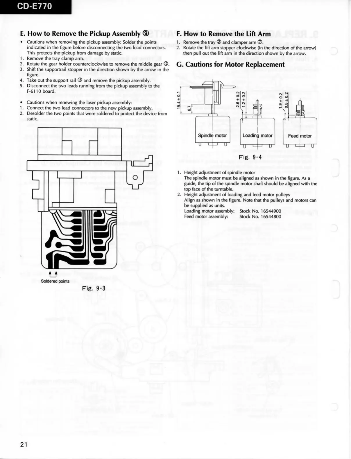 Feed motor assembly: Stock No. 16544800