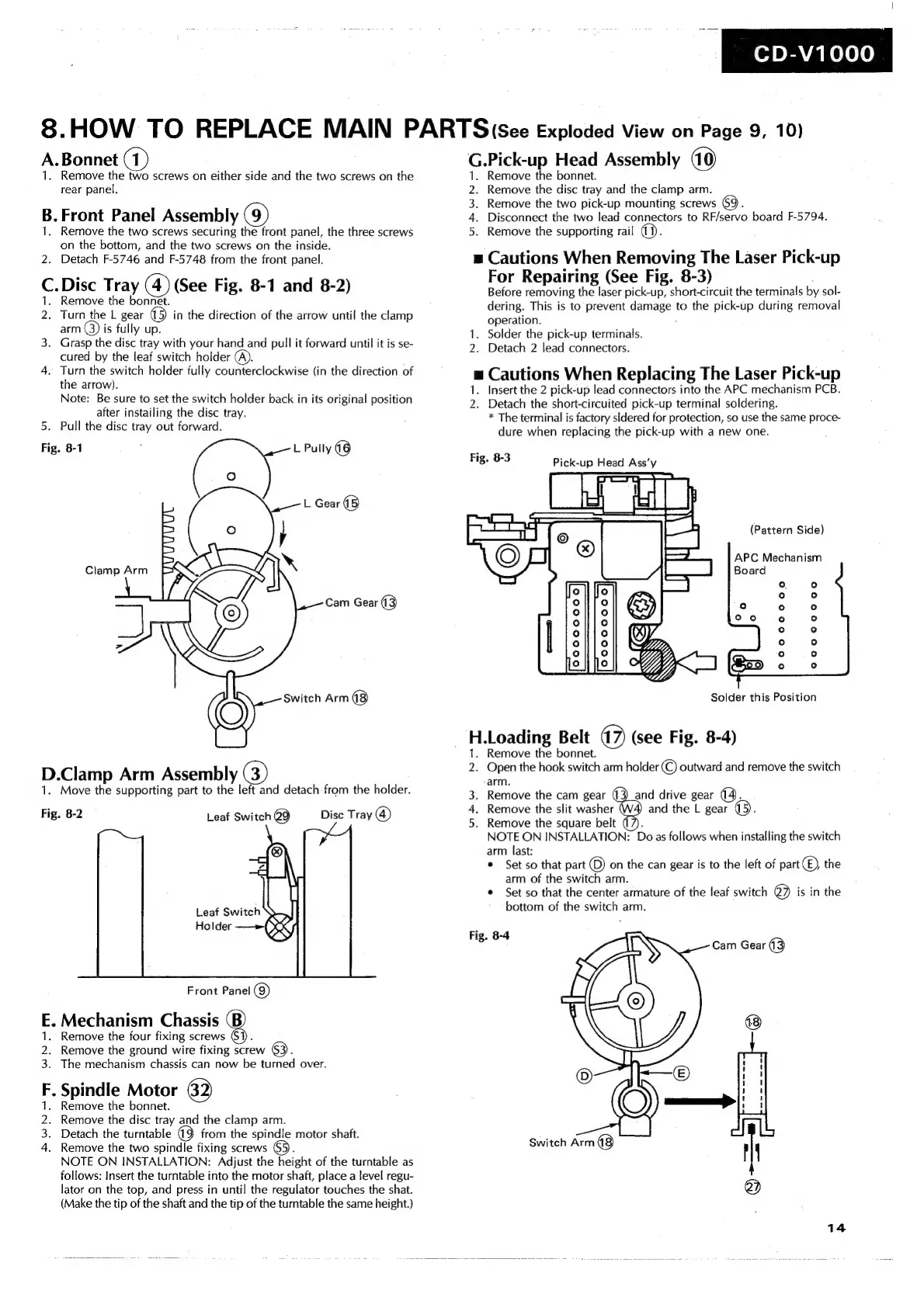 Sansui CD-V1000 - 8. How to Replace Main Parts