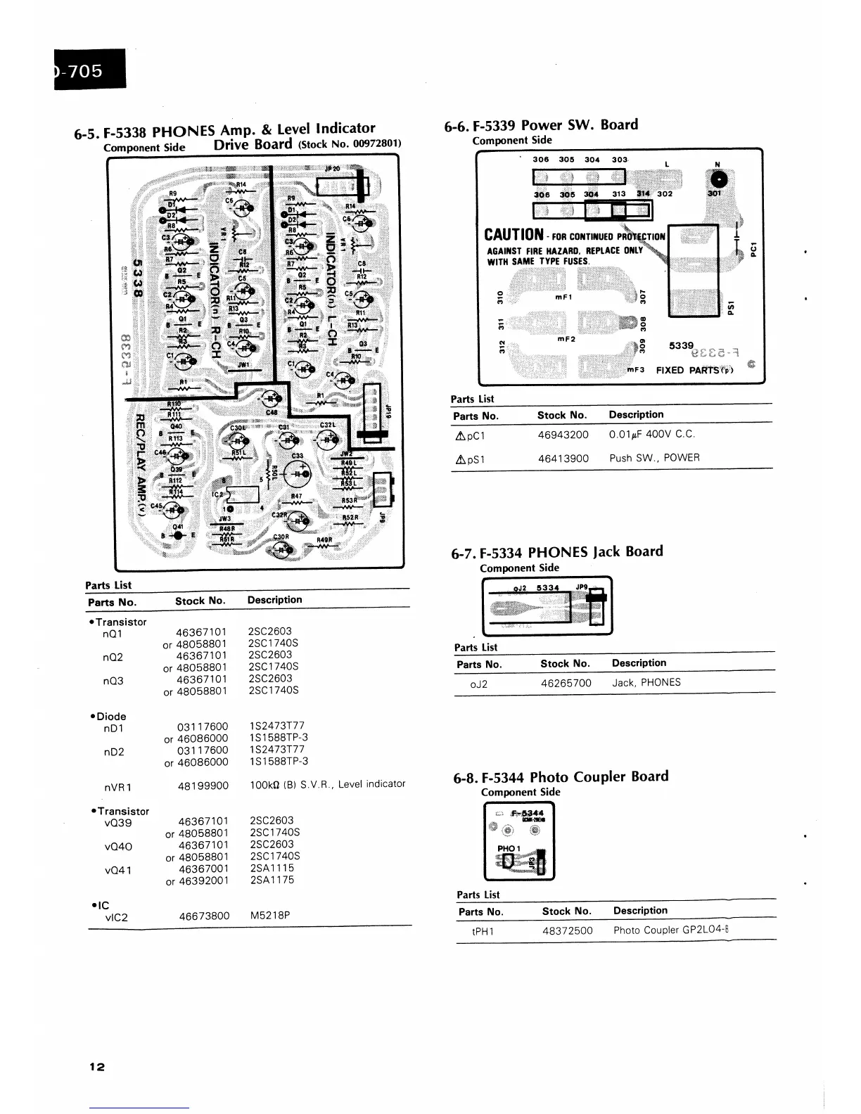 Sansui D-705 - BOARD-SPECIFIC PARTS LISTS