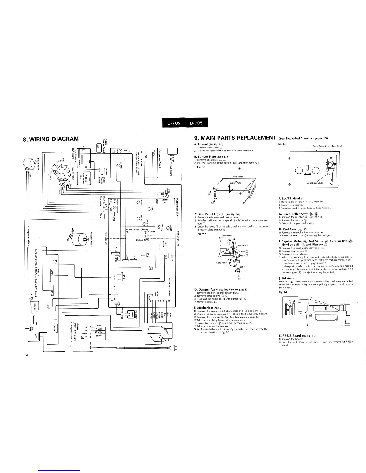 Sansui D-705 - WIRING DIAGRAM; MAIN PARTS REPLACEMENT PROCEDURES; PANEL AND COVER REMOVAL; MECHANISM AND SUB-ASSEMBLY REMOVAL