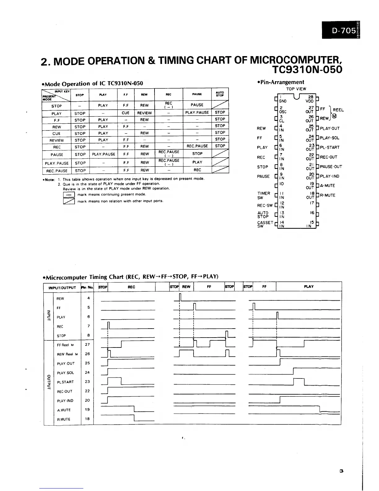 Sansui D-705 - MICROCOMPUTER MODE OPERATION AND TIMING; PIN-ARRANGEMENT