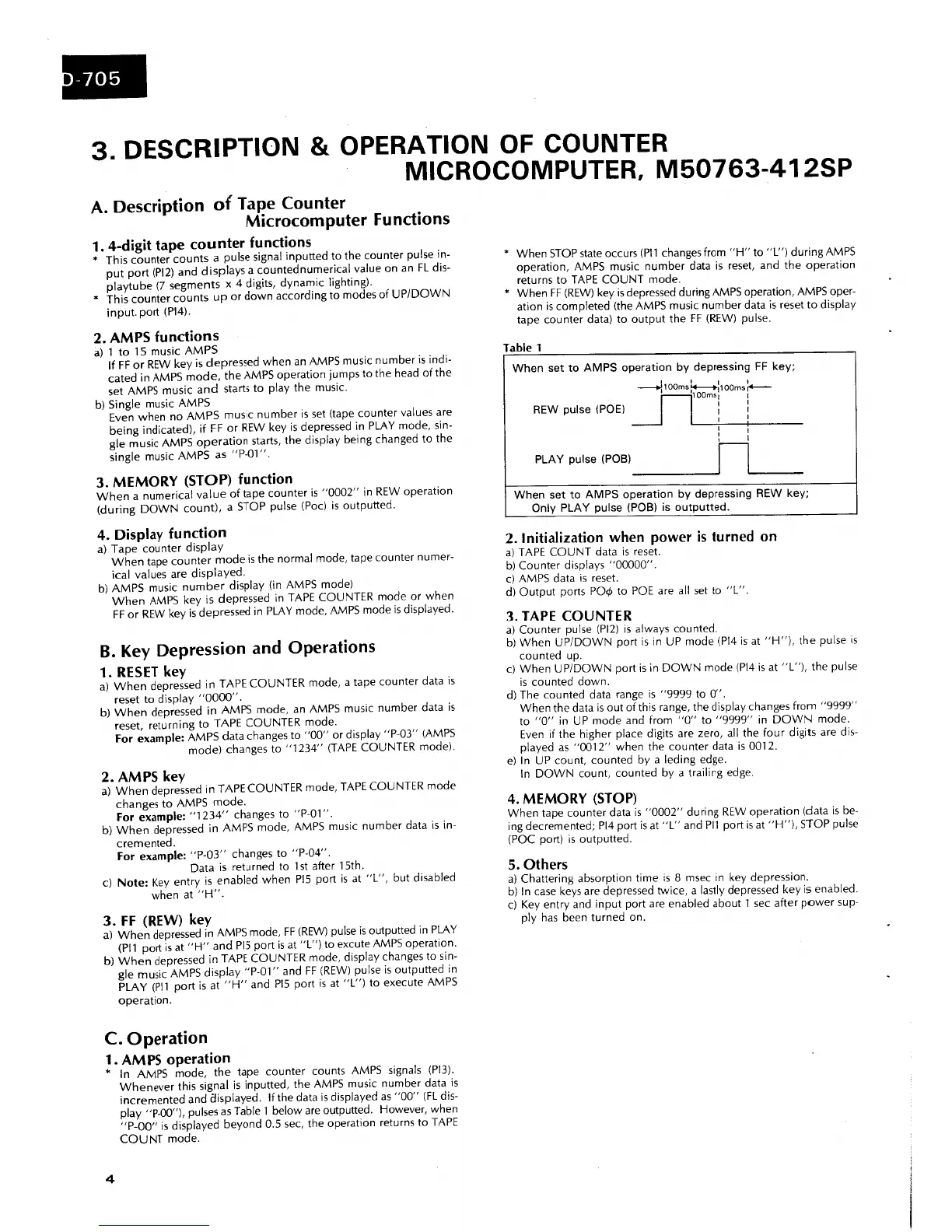 Sansui D-705 - MICROCOMPUTER DESCRIPTION AND OPERATION; TAPE COUNTER MICROCOMPUTER FUNCTIONS; KEY DEPRESSION AND OPERATIONS; OPERATION