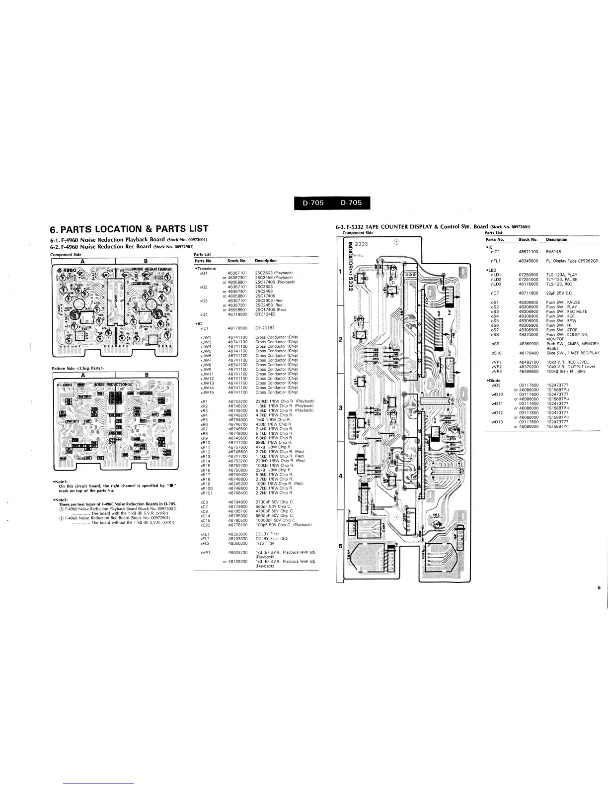 Sansui D-705 - PARTS LOCATION AND PARTS LIST; NOISE REDUCTION PLAYBACK BOARD PARTS; NOISE REDUCTION RECORD BOARD PARTS; TAPE COUNTER DISPLAY & CONTROL SW. BOARD PARTS