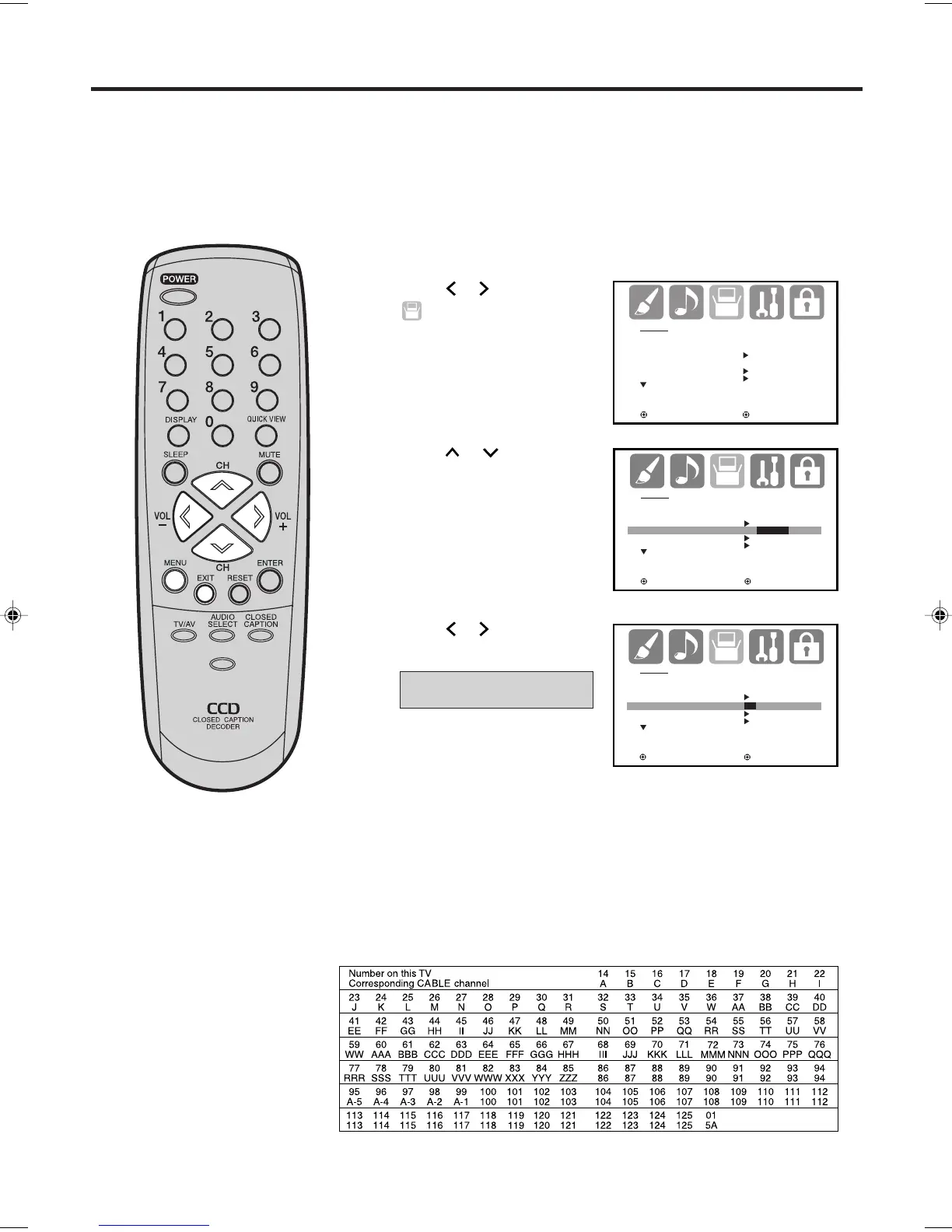 grammed into the TV’s memory. This TV can receive up to 250 VHF/UHF channels and 500 cable TV channels.