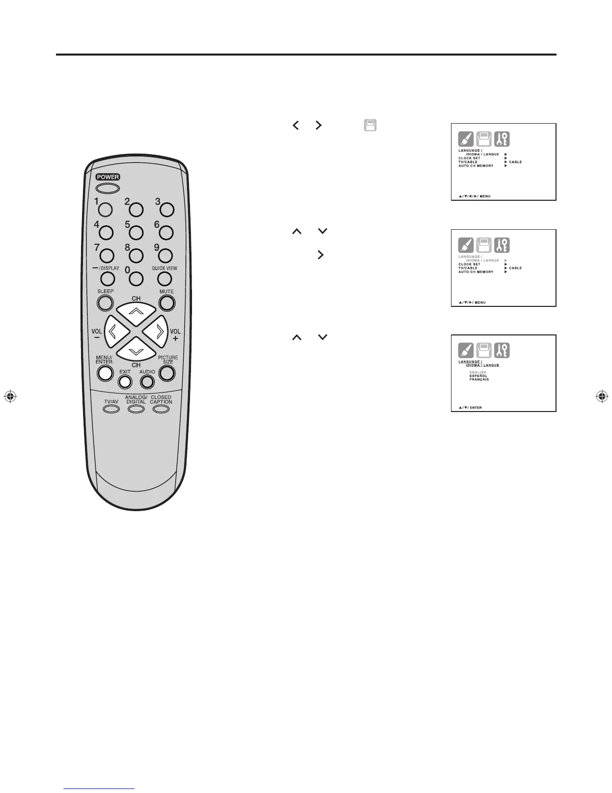 LANGUAGE/IDIOMA/LANGUE menu.