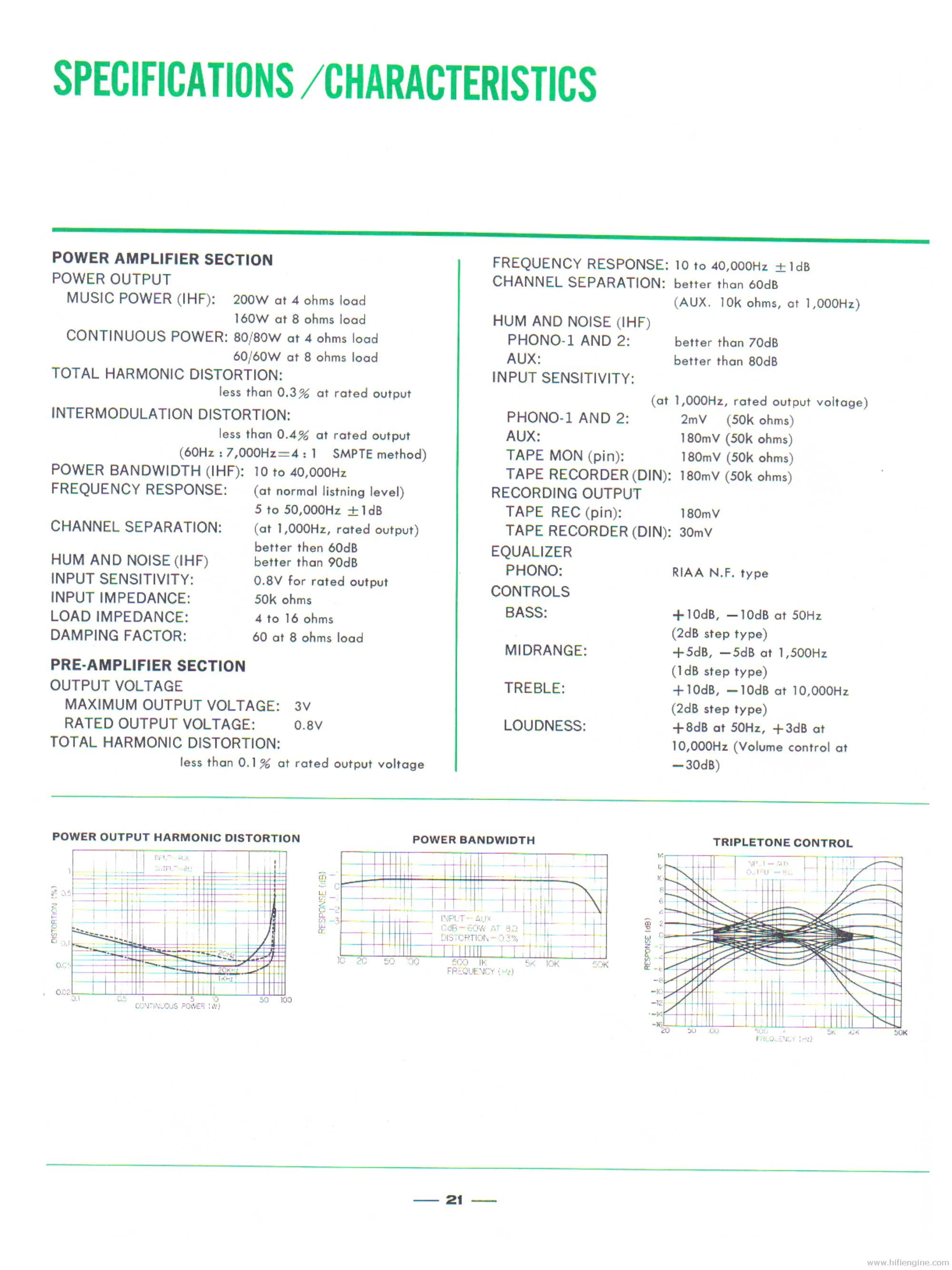 Sansui EIGHT - Specifications and Characteristics; Power Amplifier Specifications; Pre-Amplifier Section Details
