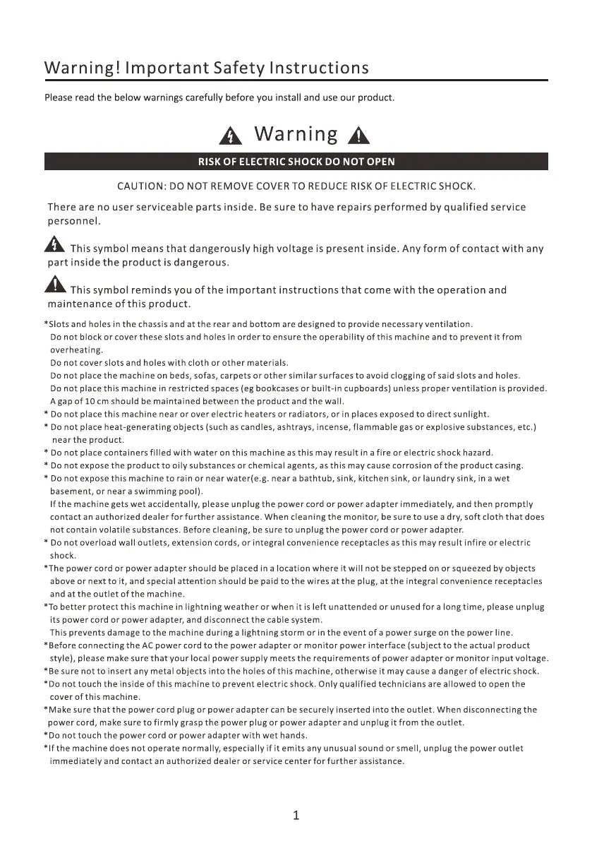 Sansui ES-G34C5 - Warning! Important Safety Instructions