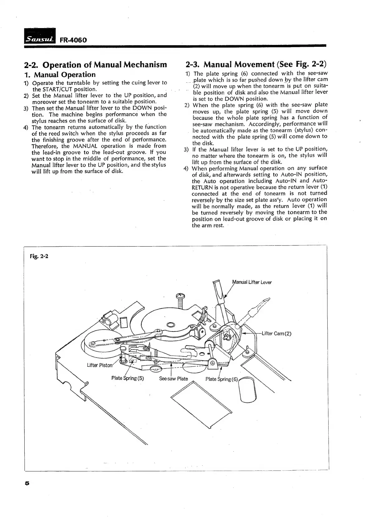 Sansui FR-4060 - 2-2. Operation of Manual Mechanism; 2-3. Manual Movement