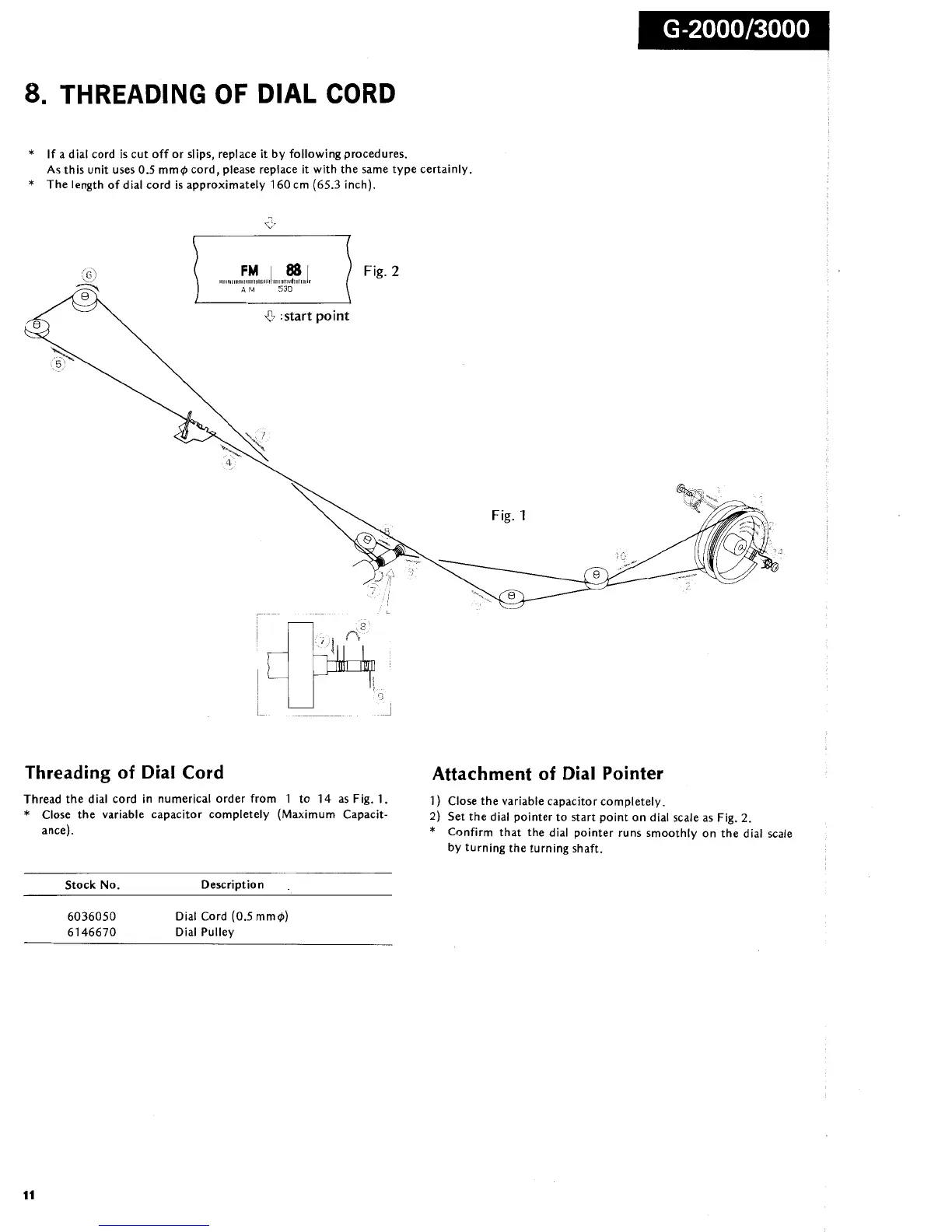 Sansui G-3000 - 8. THREADING OF DIAL CORD; Dial Cord Replacement and Attachment