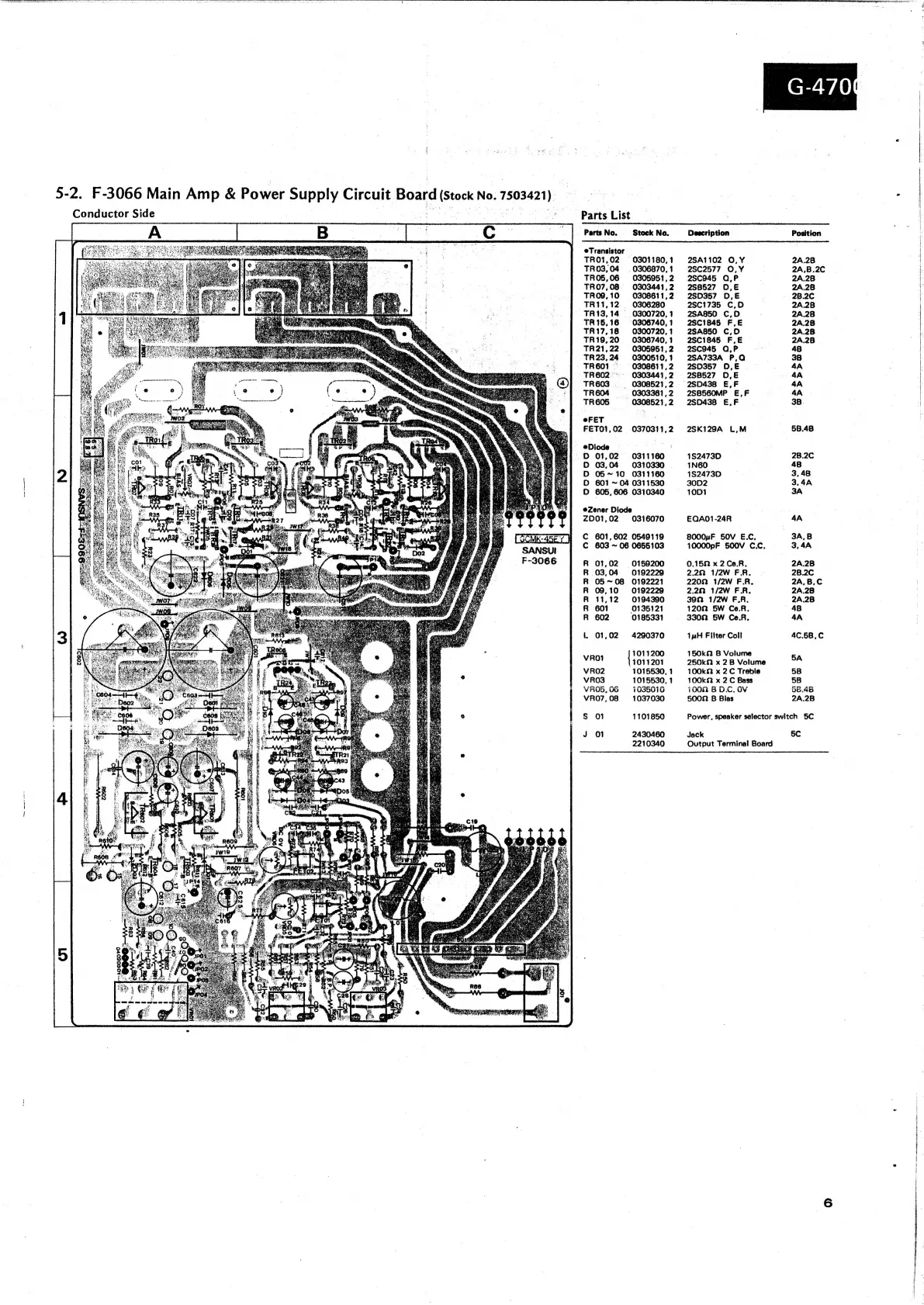 Sansui G-4700 - Main Amp & Power Supply Board (F-3066)