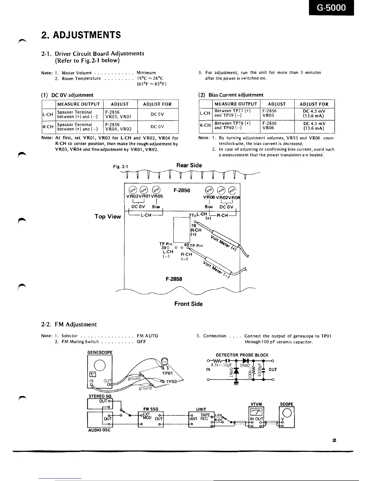 Sansui G-5000 - Adjustment Procedures; Driver Circuit Board Adjustments; FM Adjustment Procedures