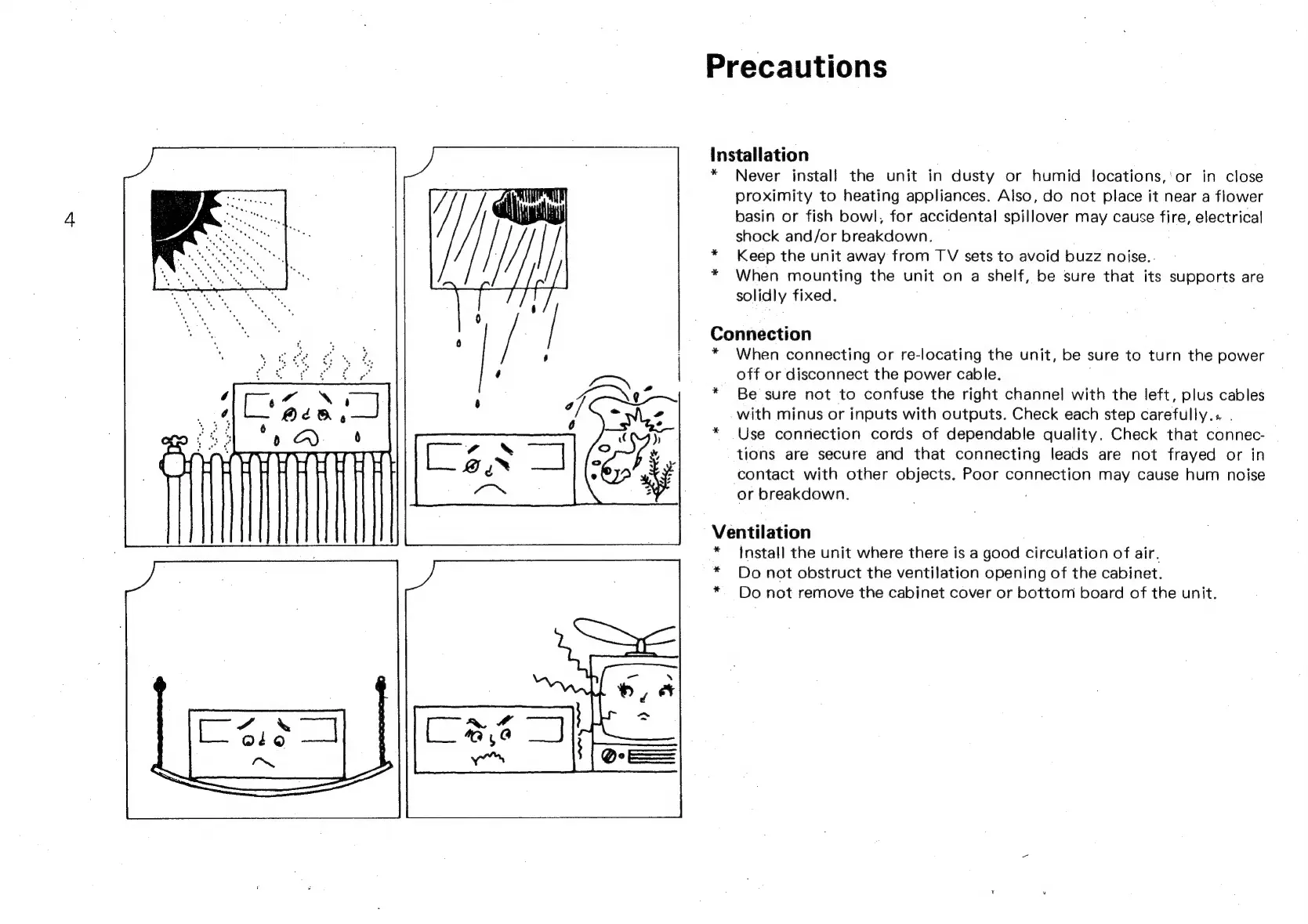 Sansui G-5700 - Safety Precautions; Installation and Ventilation Precautions; Connection Safety