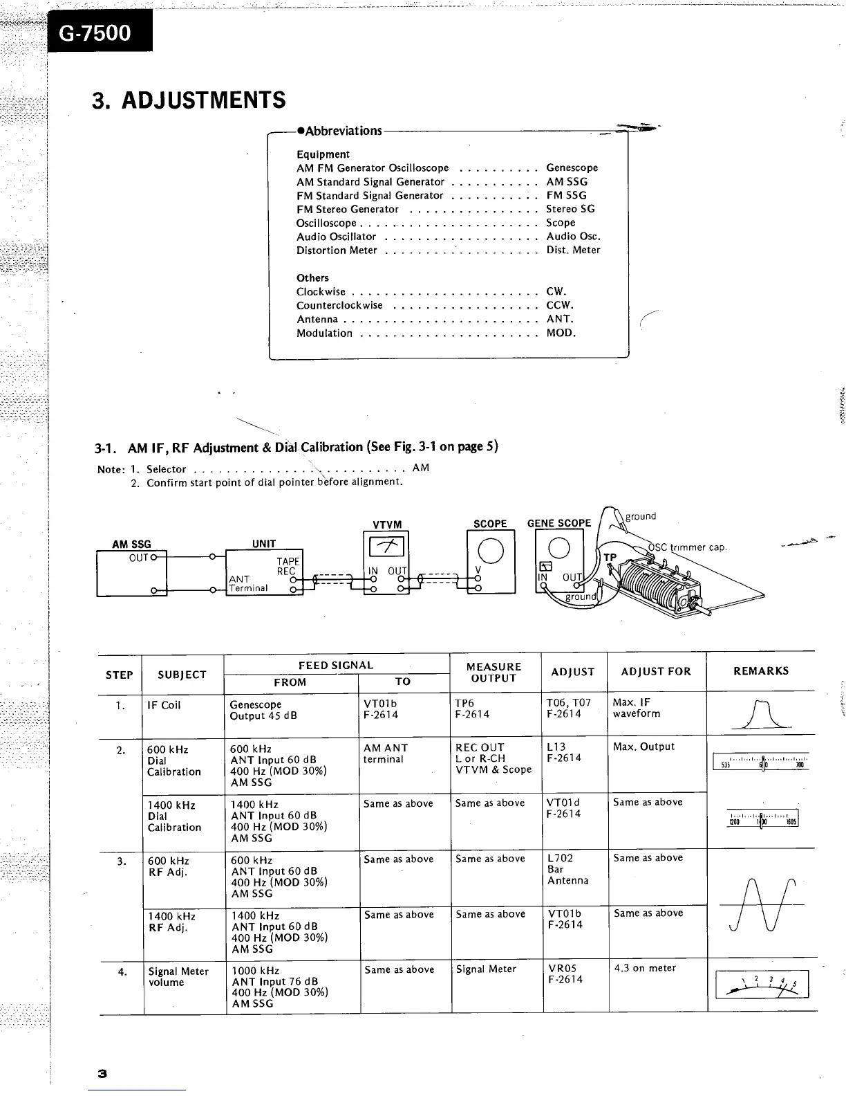 Sansui G-7500 - Adjustments; AM IF, RF Adjustment & Dial Calibration