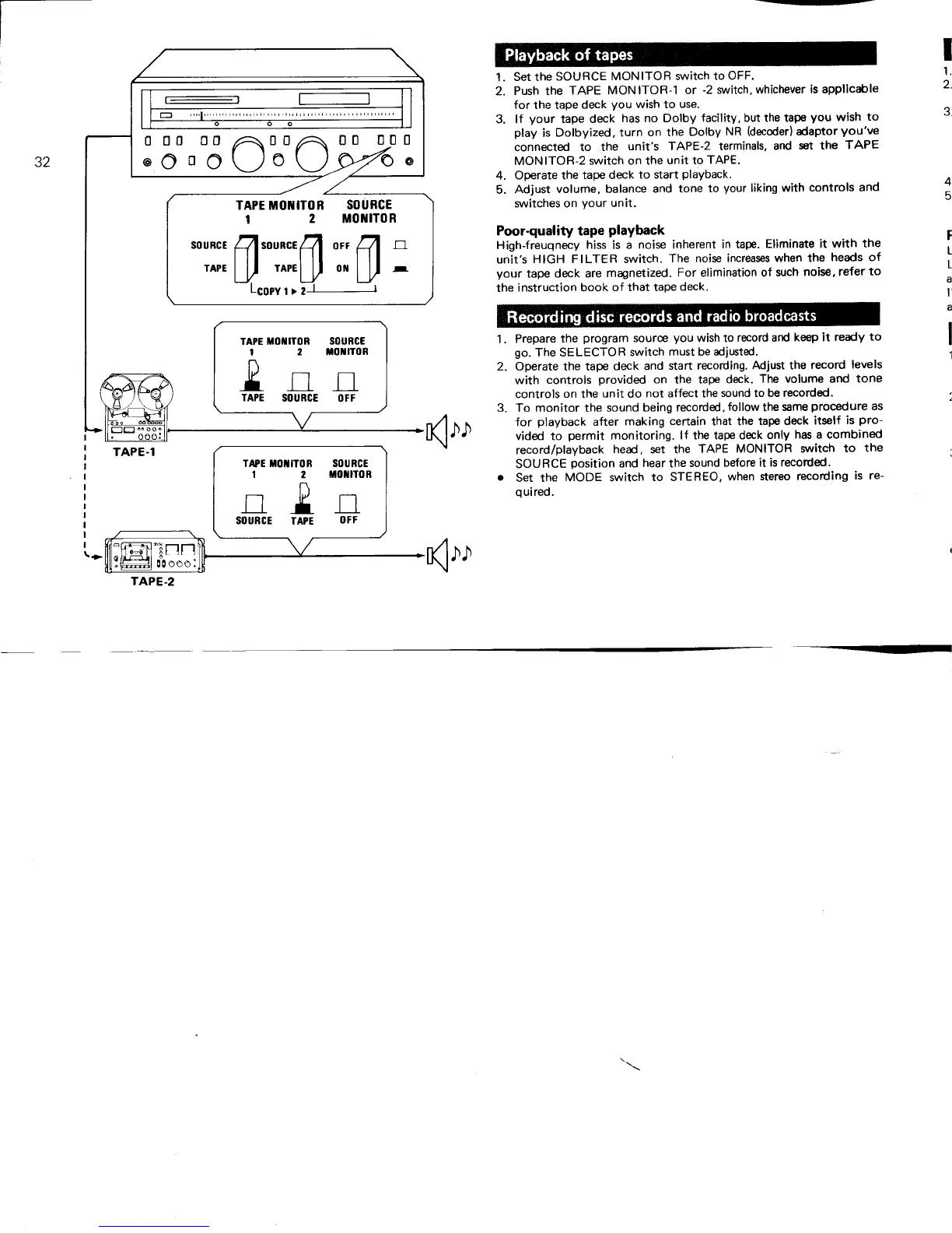 Sansui G-7700 - Tape Operations; Tape Playback and Quality Tips; Recording Radio and Records to Tape