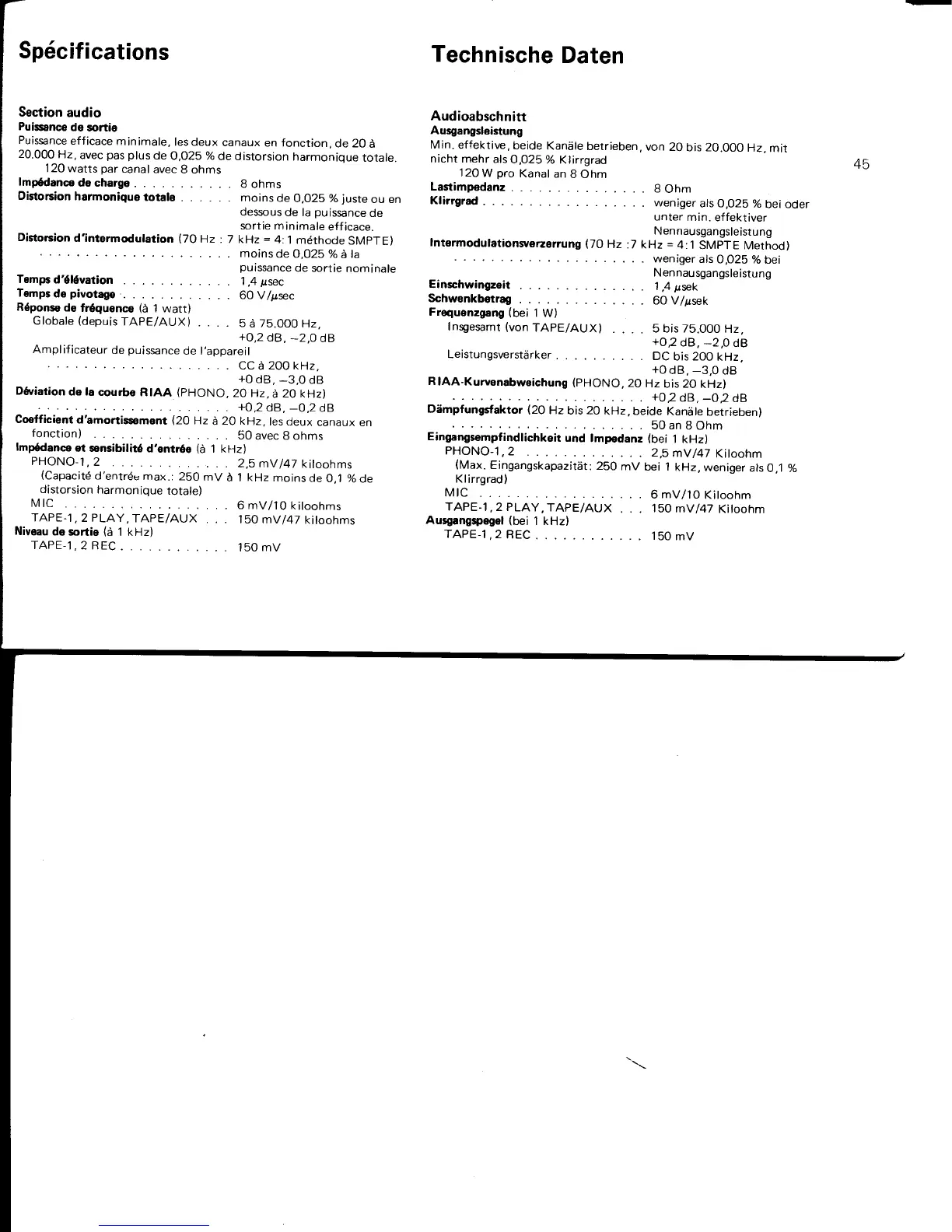Sansui G-7700 - Technische Daten