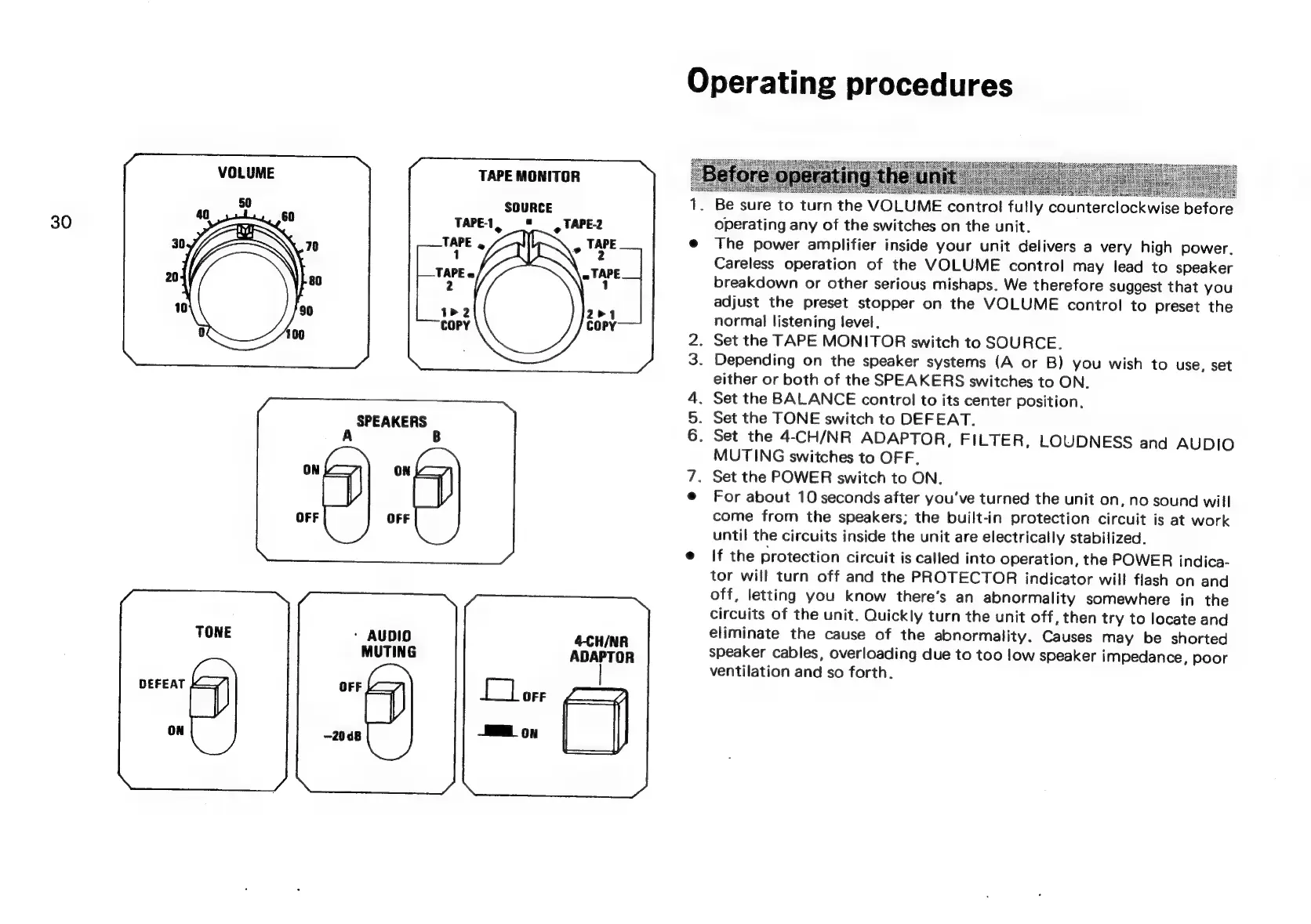 Sansui G-9000 - Operating Procedures; Initial Setup and Operation