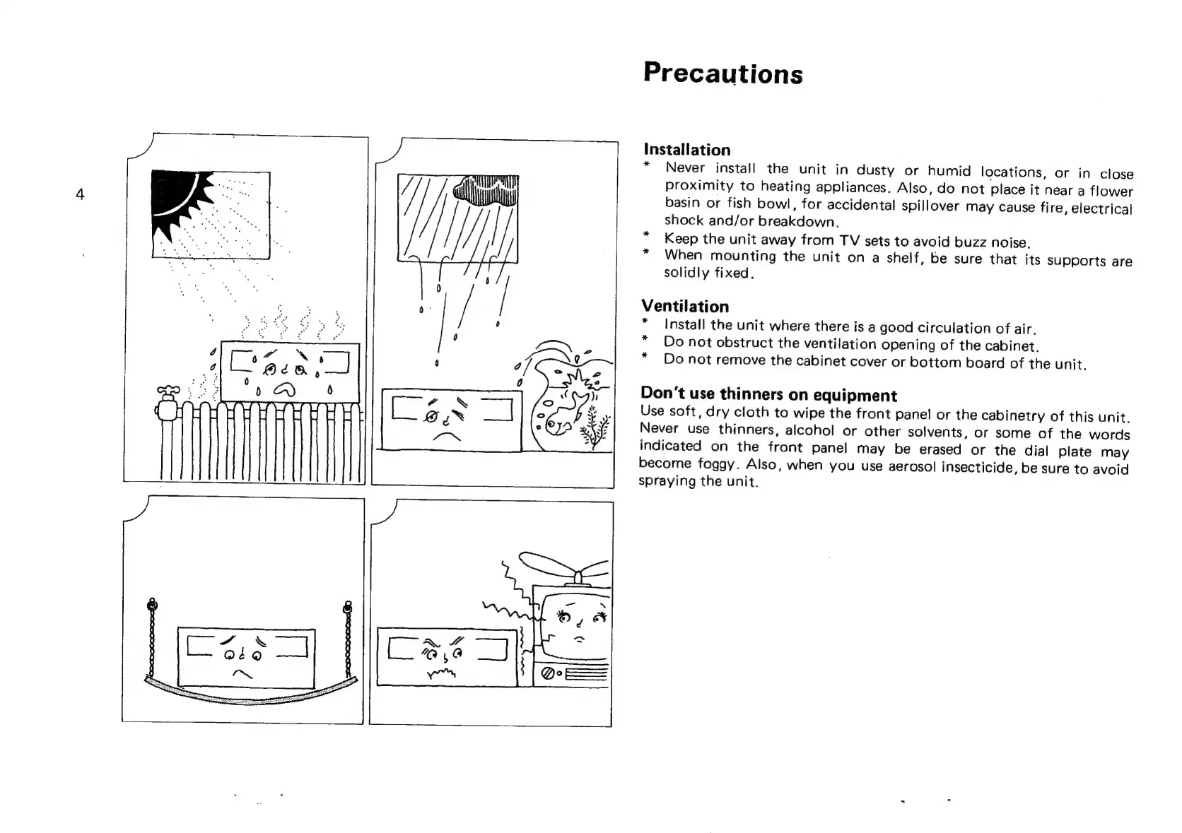 Sansui G-9000 - Precautions; Installation and Ventilation Precautions; Cleaning Precautions