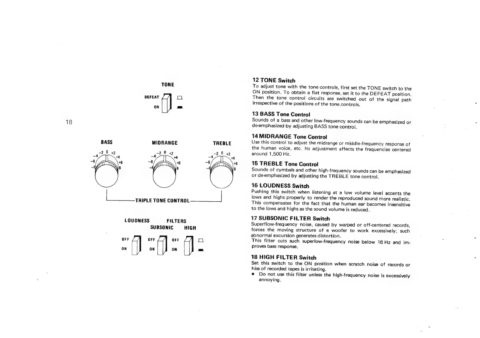 Sansui G-9700 - Tone, Filter, and Loudness Controls; TONE Switch; BASS Tone Control; MIDRANGE Tone Control
