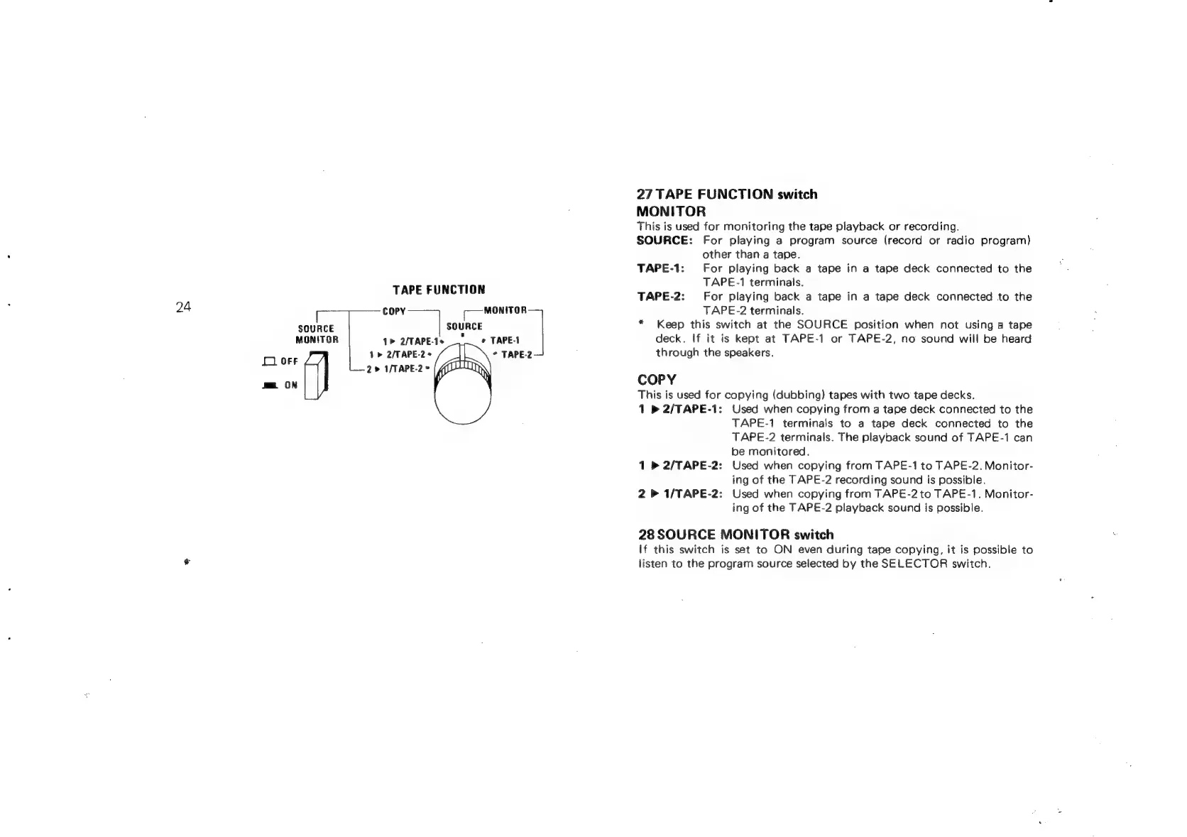 Sansui G-9700 - Tape Operation Switches; TAPE FUNCTION Switch; SOURCE MONITOR Switch