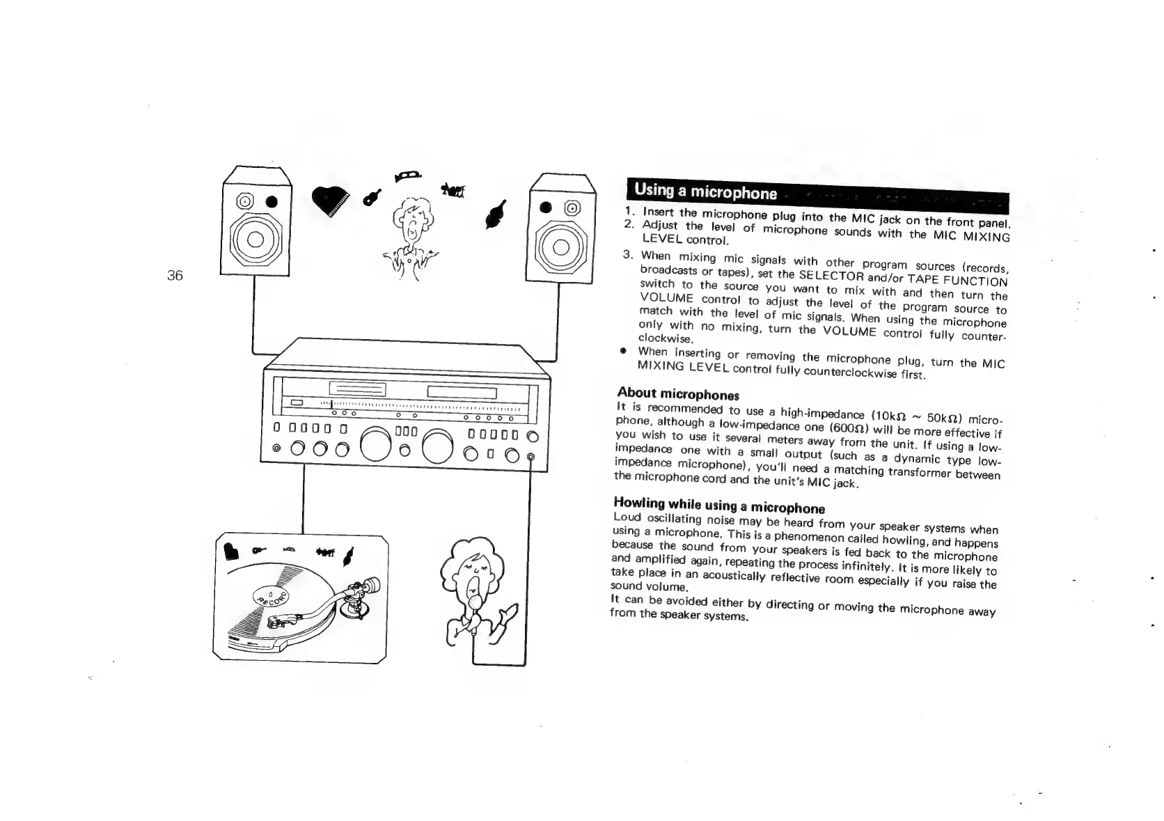 Sansui G-9700 - Using a Microphone; About Microphones; Howling While Using a Microphone