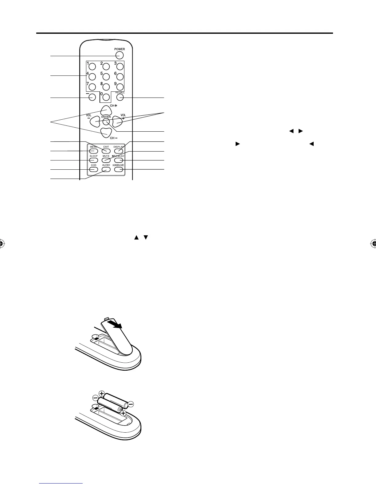 Before using the remote control, batteries must first be installed.