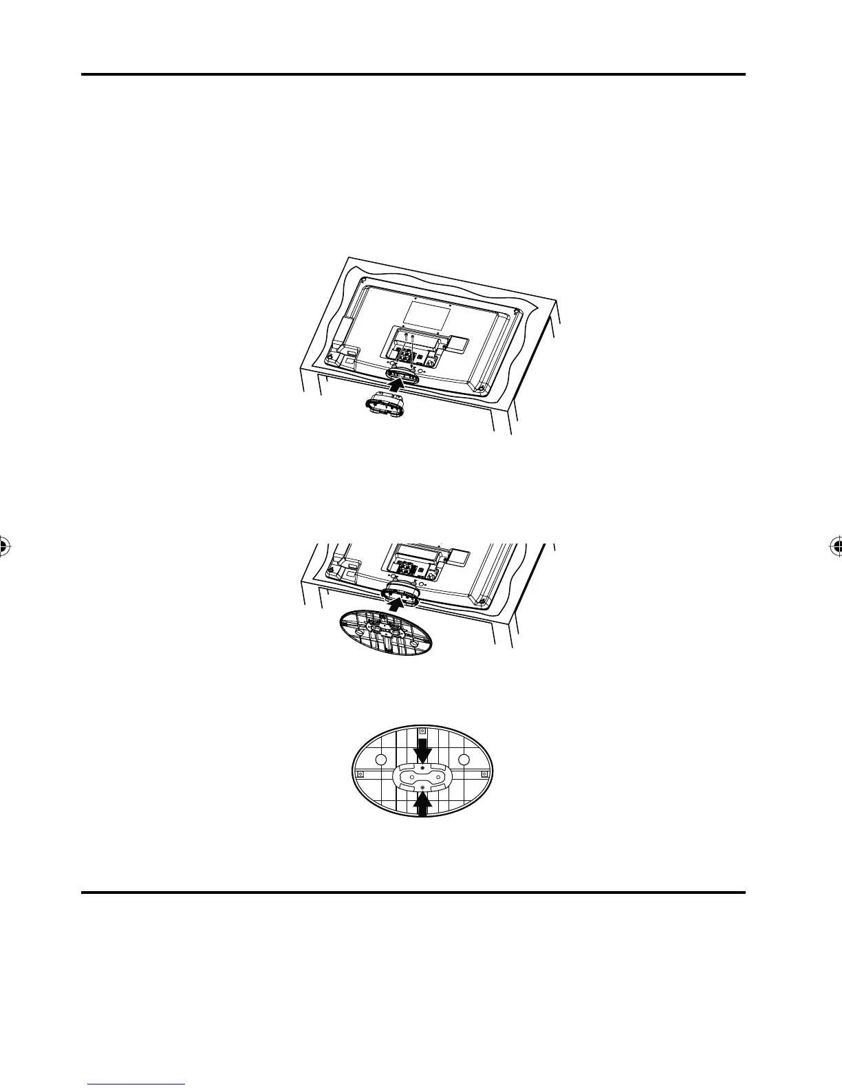 Align the stand with the TV as below and insert securely.