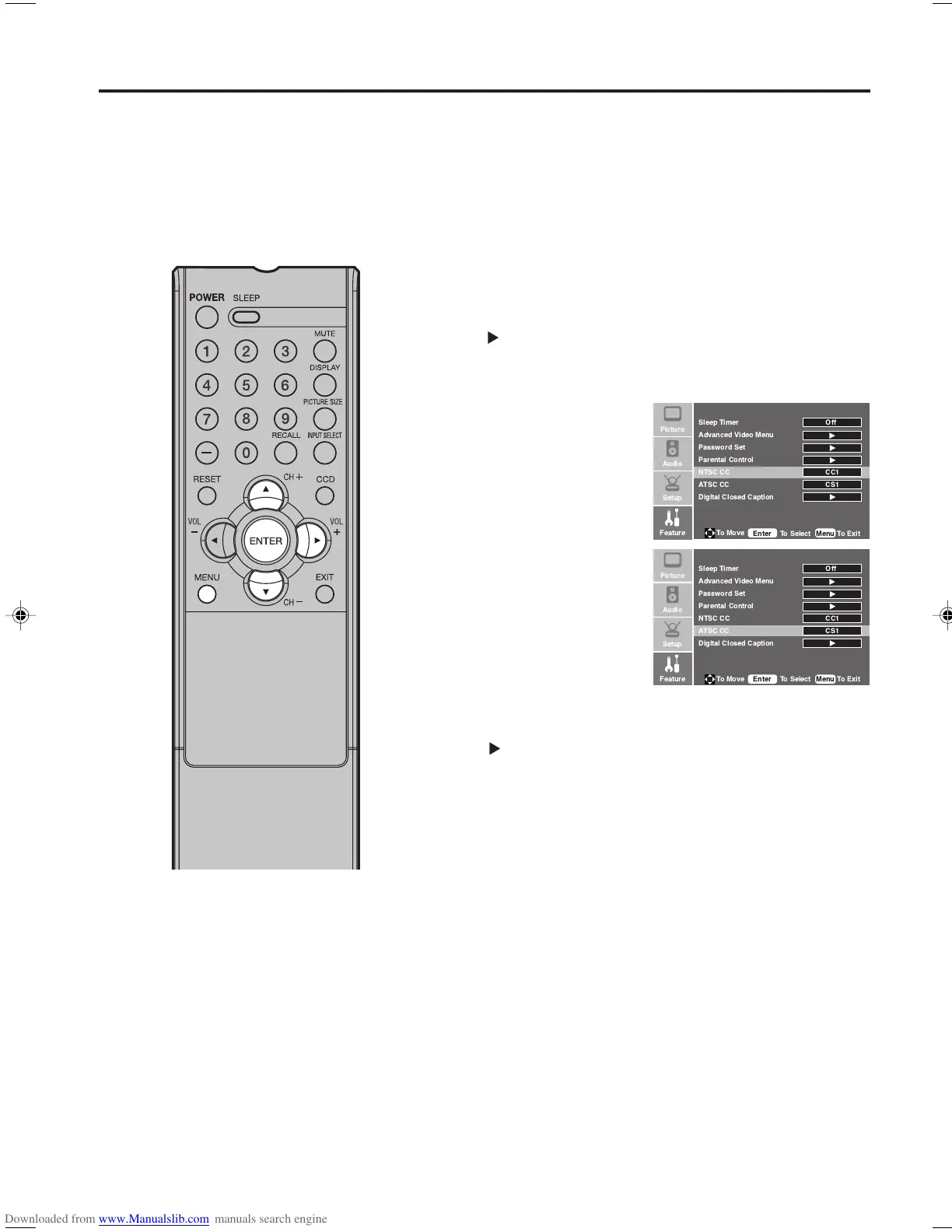 Press ▲ or ▼ to select “NTSC CC” or “ATSC CC”.