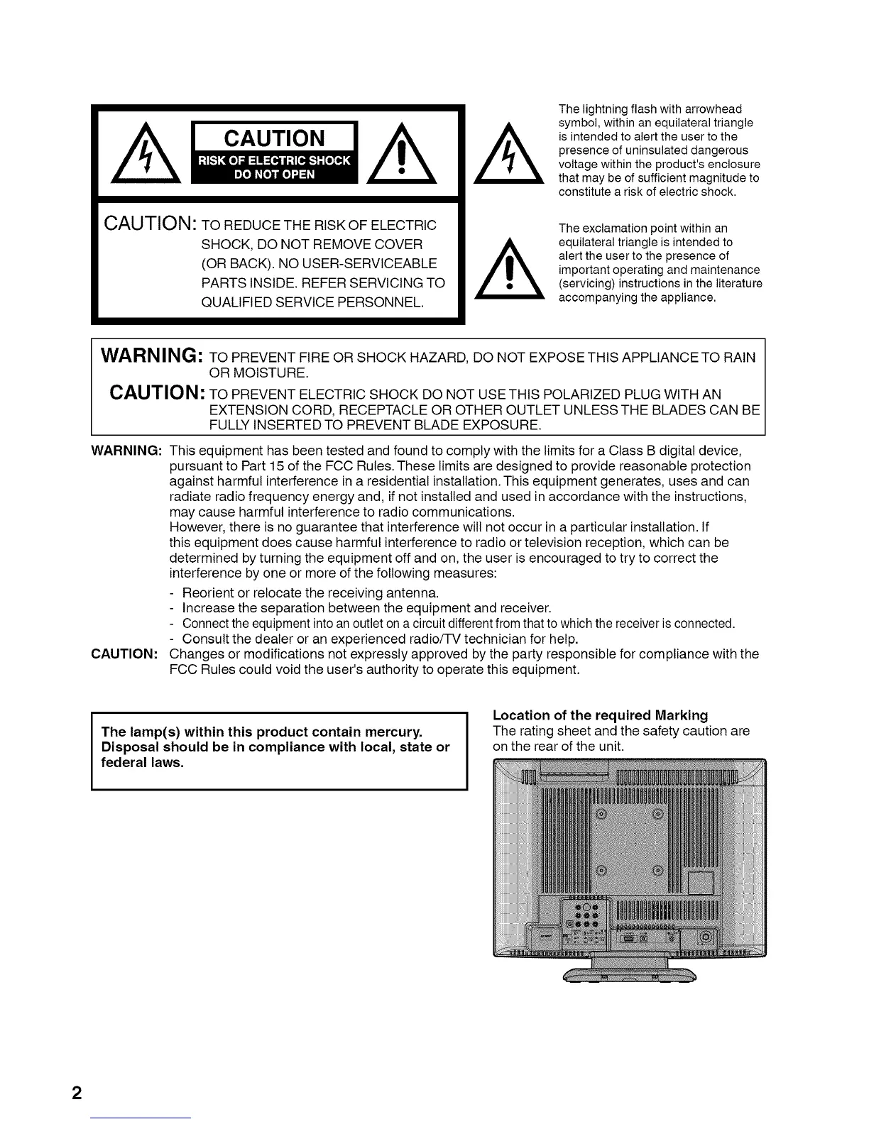 CAUTION: TO REDUCE THE RISK OF ELECTRIC