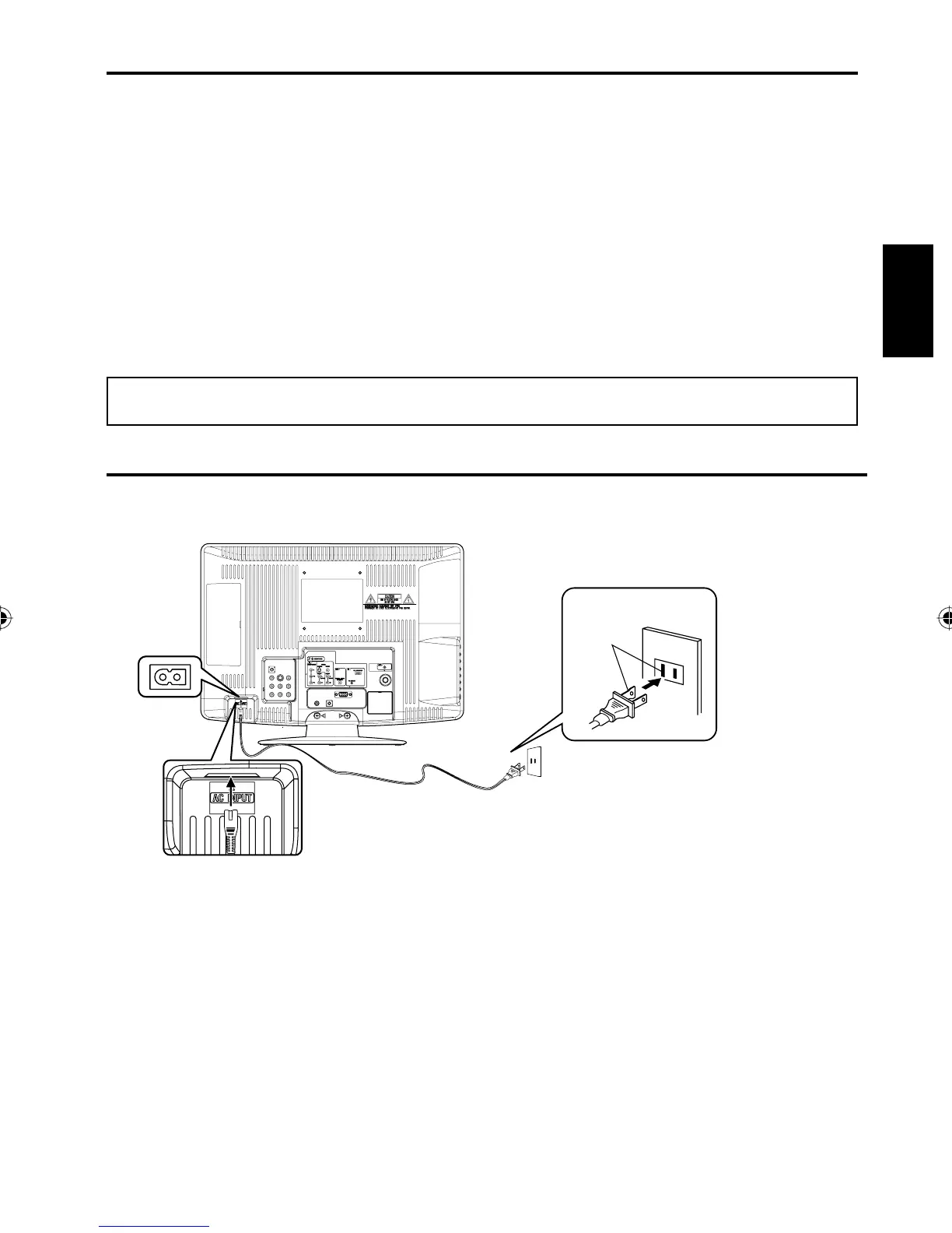 Por favor asegúrese de insertar firmemente el cable tanto en la TV LCD como en el enchufe de la pared.