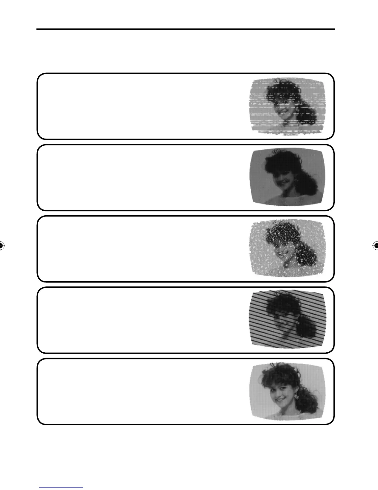 tipos más comunes de interferencia de televisión están mostrados abajo. Si aparece uno de estos síntomas