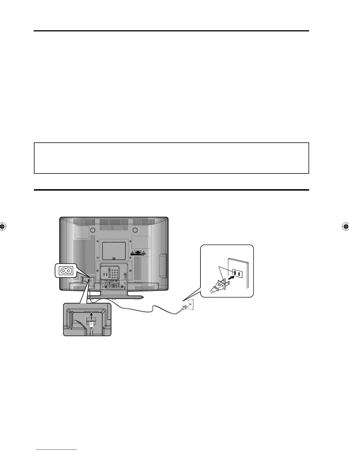 Please make sure to insert the cord securely at both the LCD TV and the wall outlet.