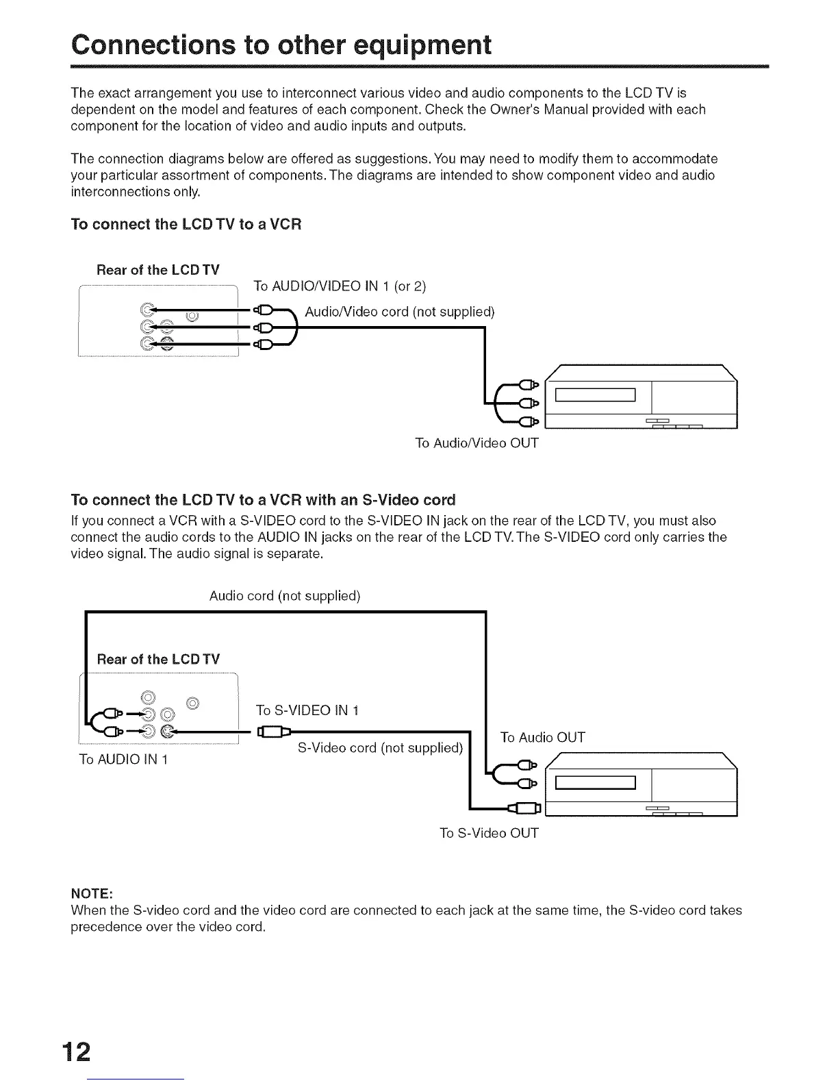 If you connect aVCR with a S-VIDEO cord to the S-VIDEO IN jack on the rear of the LCD TV, you must also