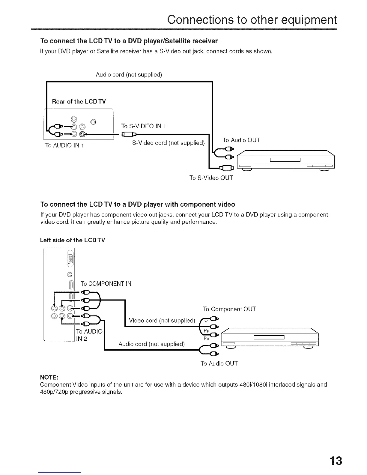 If your DVDplayer or Satellite receiver has a S-Video out jack, connect cords as shown.
