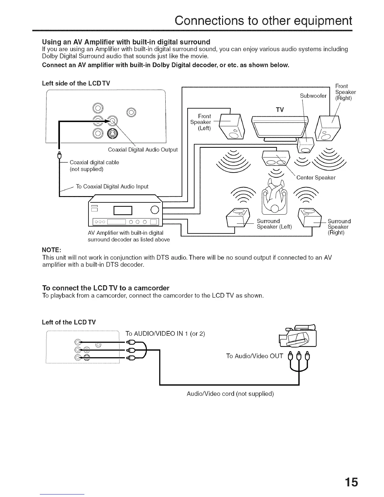 To playbackfrom a camcorder, connect the camcorder to the LCDTV as shown.